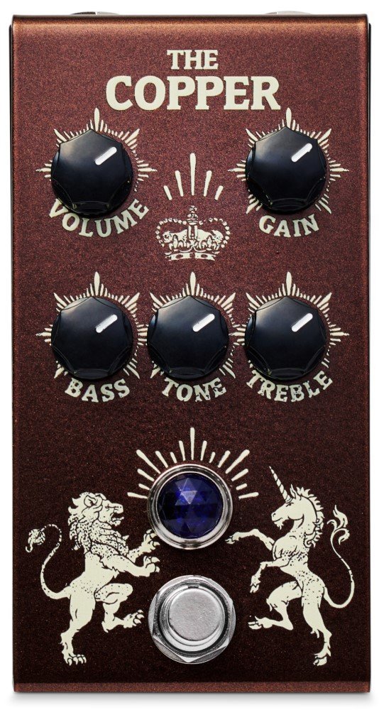 VICTORY V1 COPPER is a guitar pedal preamp that emulates the sounds and character of the VC35 Copper amplifier and enhances the sound of the EL84 final tubes, for a sound attributable to the British tube sound of the 60s. It features Volume, Gain and 2-band Equalizer controls with tone control