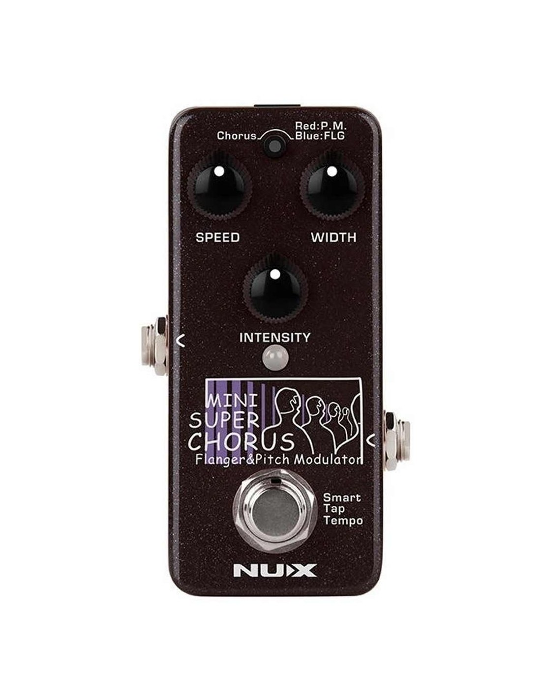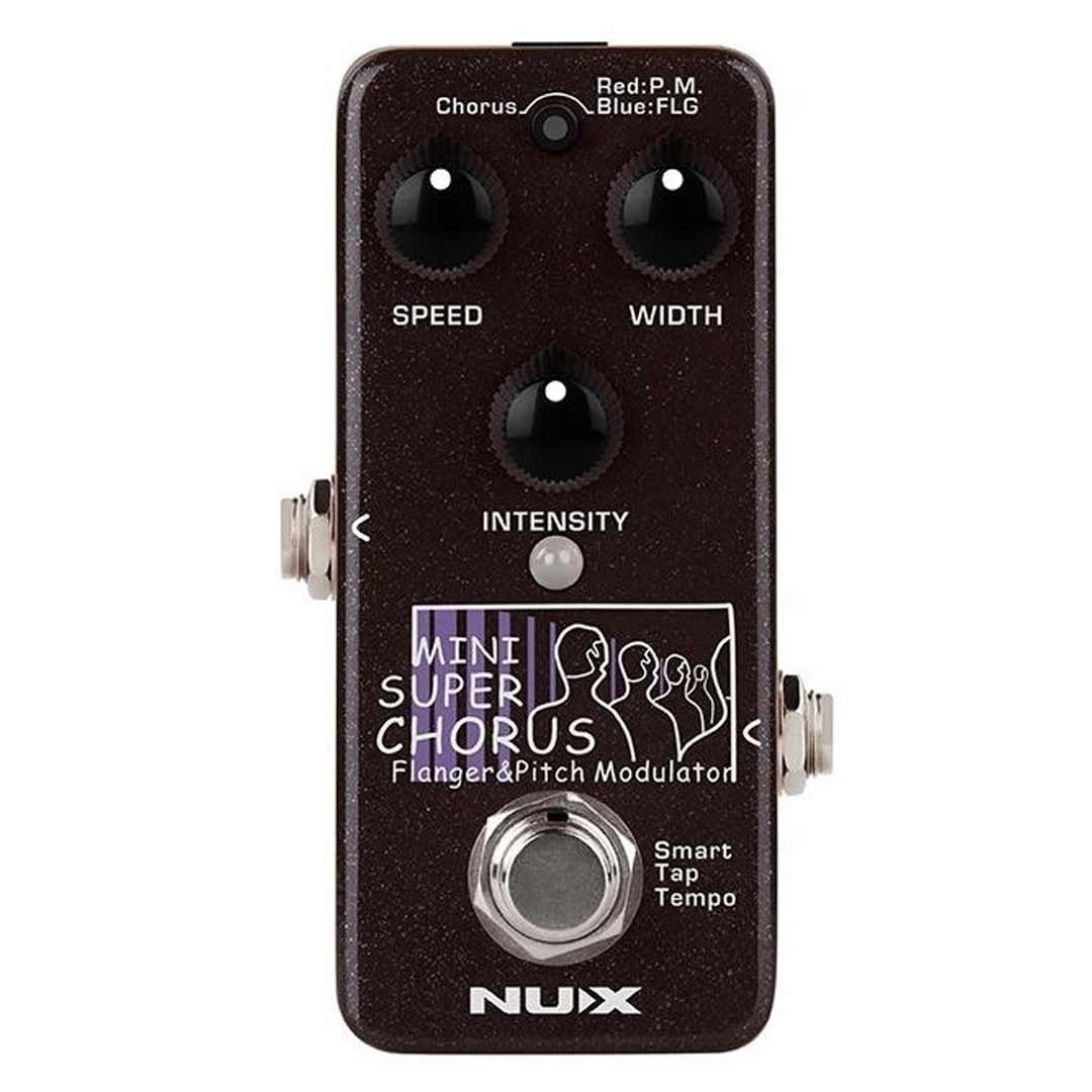 The NCH-5 Mini SCF is a mini Chorus, Flanger, Pict modulation effect pedal by Nux, inspired by the Stereo Chorus Flanger by TC Electronic. It features 3 Speed, Width and Intensity knobs, Smart Tap Tempo function, a USB-C port for firmware updates, true or buffer bypass functionality, and stereo I/O support