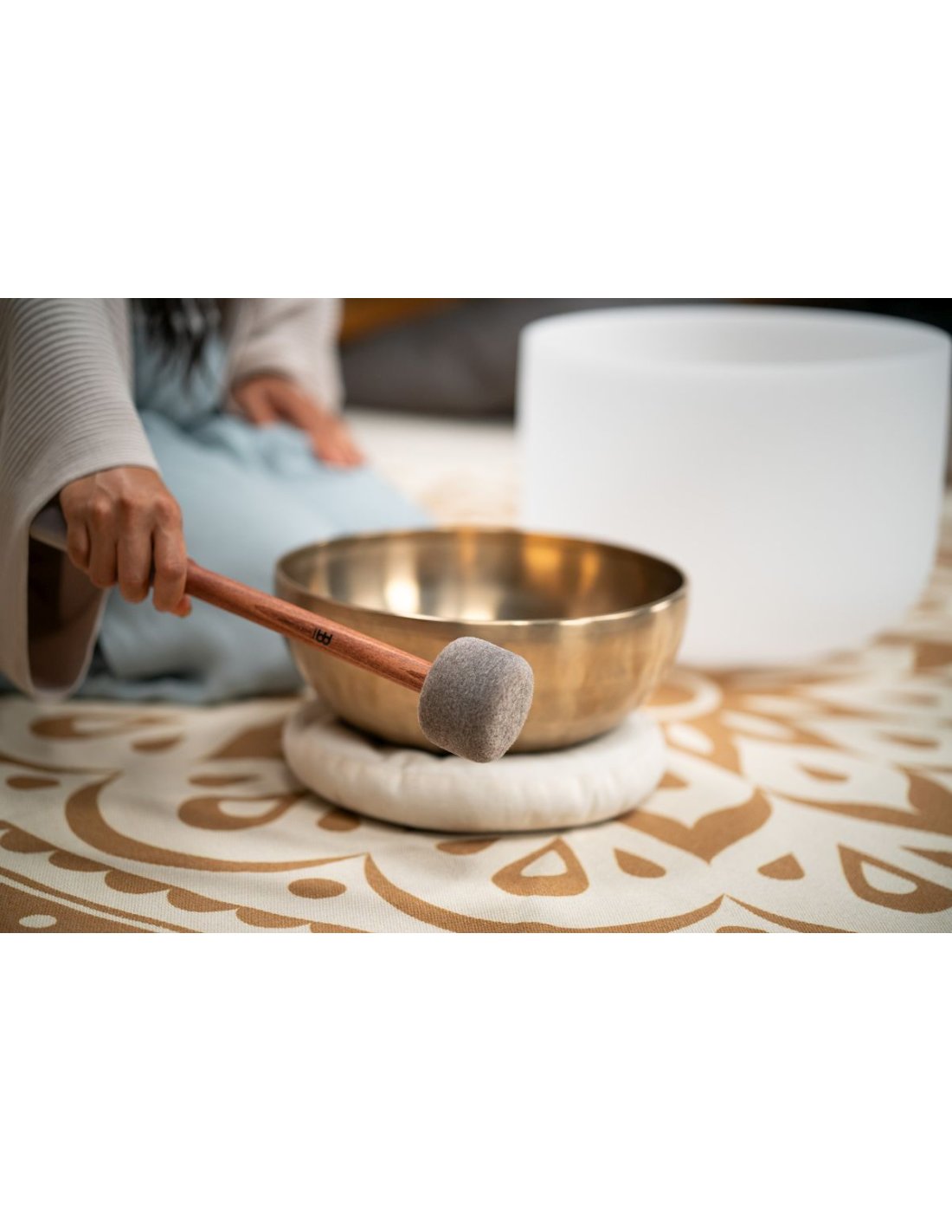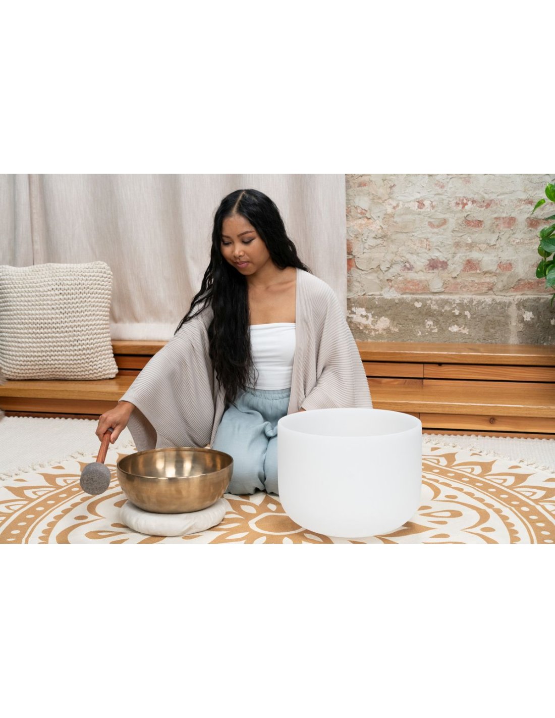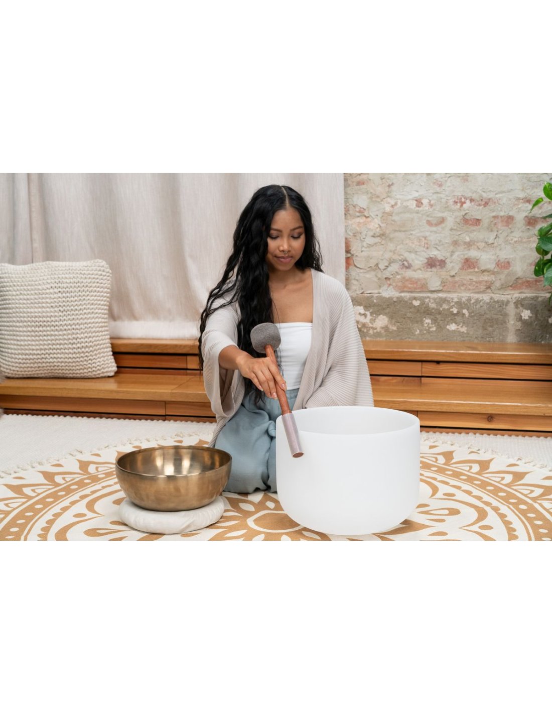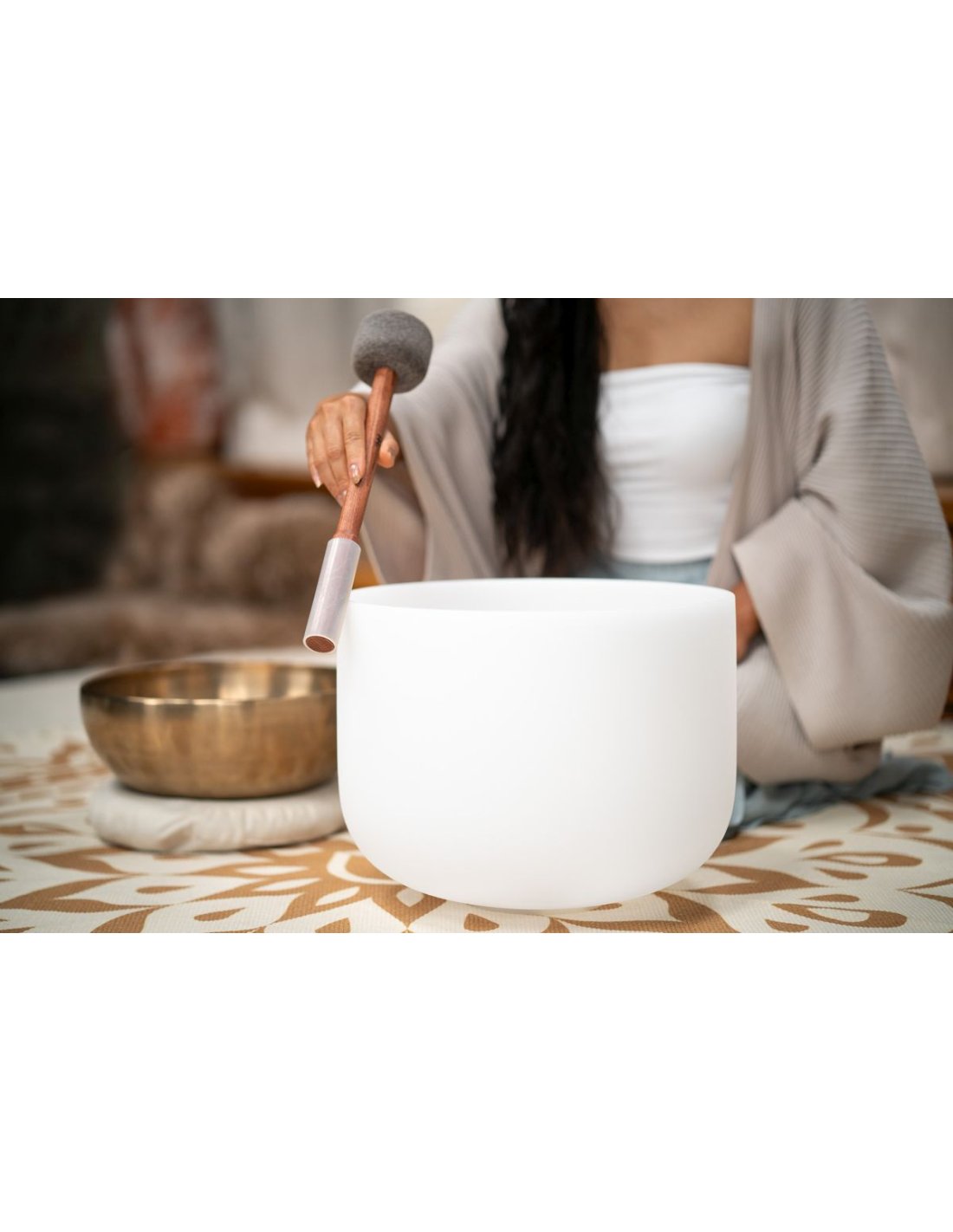 'The Meinl Sonic Energy Sound Bath Double Deck is the versatile all-in-one solution for seamless transitions between different Tibetan bells. It easily changes from Tibetan metal bells to crystal bells, eliminating the need to constantly change the knob. Improve your sound healing experience with ease and fluidity. Switch effortlessly from Tibetan metal to crystal bells, perfect for sound baths with different instruments. Length 13.78"/35 cm SE2024'