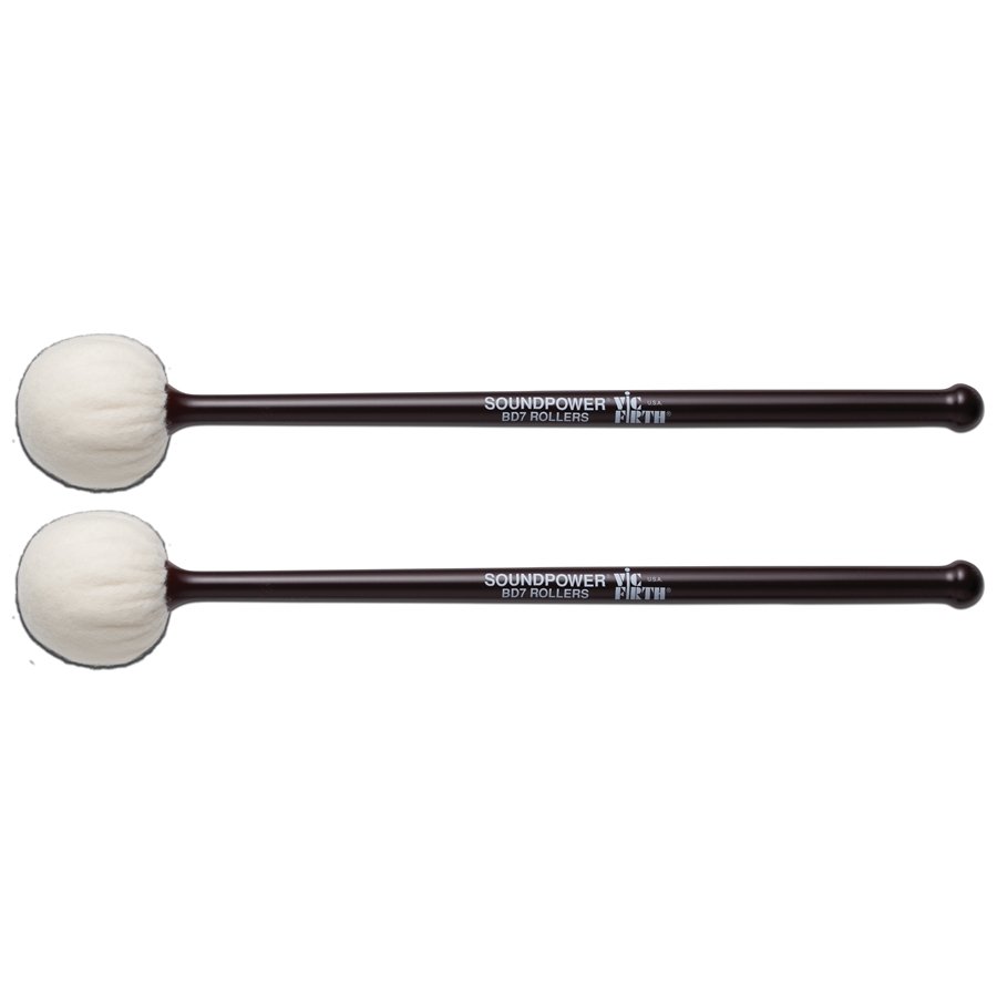 The Vic Firth BD7 Soundpower BD Rollers bass drum mallet is a mallet with the same hardness as the BD1 model suitable for rolls. Sold in pairs.