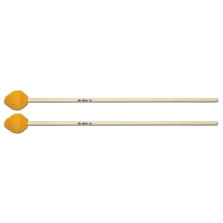 The Vic Firth M3 American Custom Keyboard Medium Yellow Yarn Tone Percussion Mallet is a medium hard mushroom head mallet for playing in any context.
