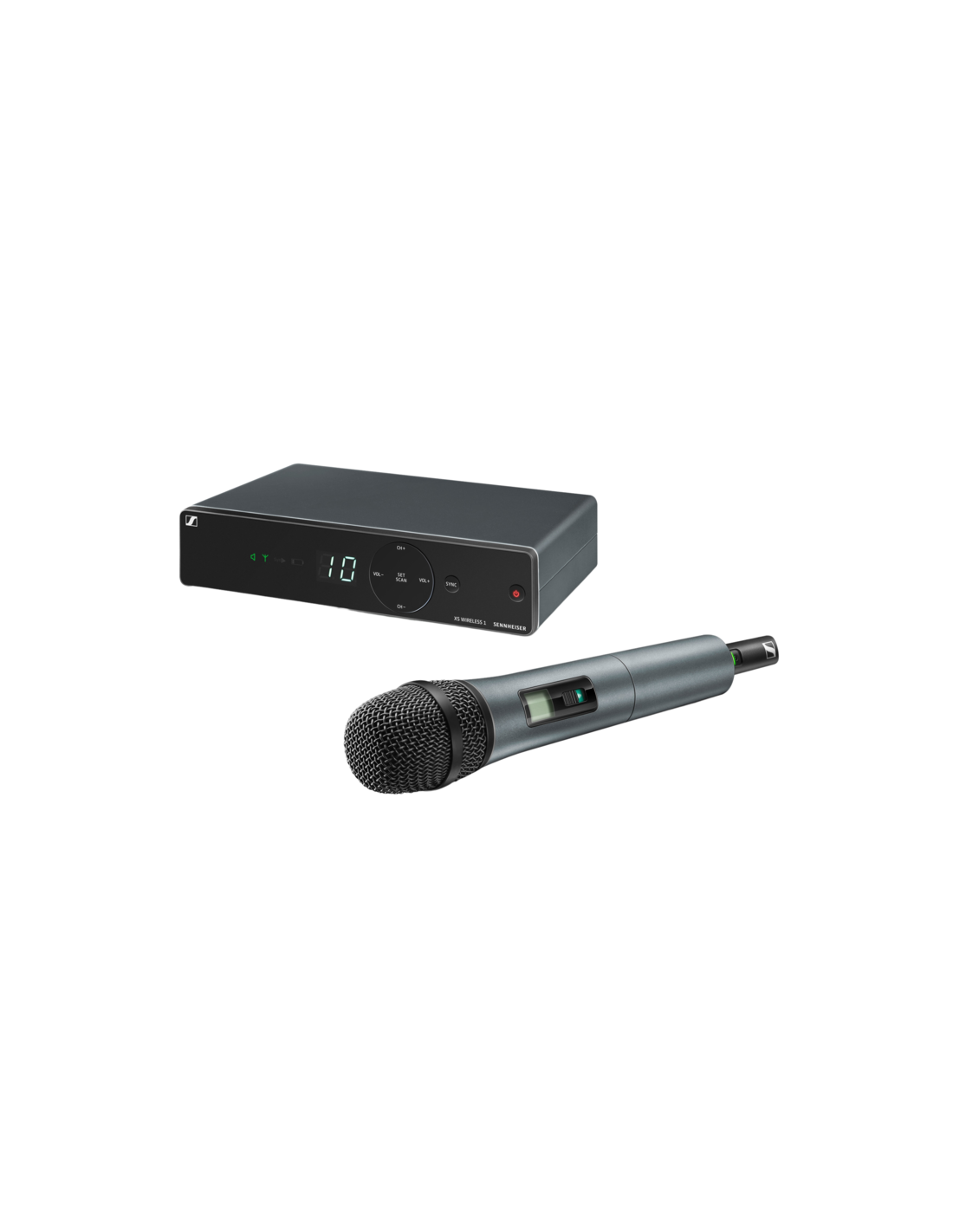 SENNHEISER XSW 1 825 BC BAND VOCAL is a complete wireless microphone system (BC-Band): 670-694MHz, consisting of an EM-XSW1 receiver and a SKM-XSW handheld transmitter with cardioid dynamic capsule. The technical characteristics include transmitter with 825 cardioid dynamic capsule with a warm and homogeneous sound, system frequency range (BC-Band): 670-694MHz, receiver with Auto Scan function, Sync function via dedicated button, status LED icons, volume and channel controls, 10 simultaneous systems per band, balanced output via XLR, unbalanced output via 6.3 mm TS Jack, Mic/Line selector, transmitter powered by 2 AA batteries. The set includes power adapter, rod clip, 2 AA batteries and adapters