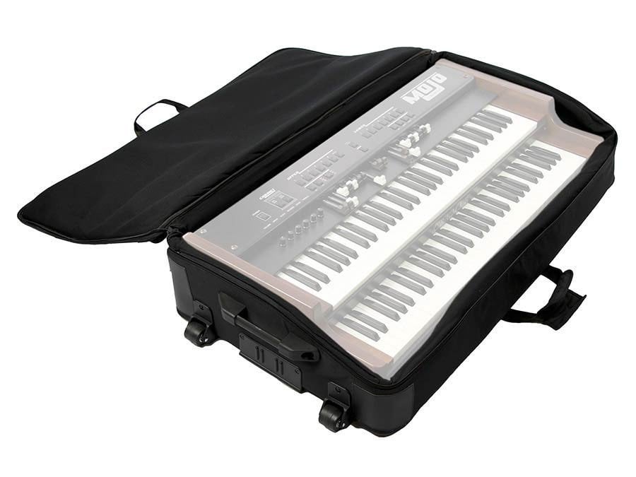 Semi-rigid trolley case for Mojo Classic and Suitcase with Crumar logo MOJO bag, 30 mm lining, black, with wheels, 990 x 510 x 165 mmThe SPT-99-BK is a sturdy and lightweight bag for the Crumar Mojo. With its 3 cm lining, the SPT-99 offers sufficient protection for the instrument and can be used as a carrying bag and as a trolley. The presence of handles on both sides makes lifting two people comfortable for both wearers. Also compatible with Mojo Dual and Mojo XT.A gig bag keeps the instrument light, unlike a flight case. The SPT-99 has a large storage compartment, divided into two compartments, where you can store accessories such as the Mojo Editor or the crescent switch. Of course, there is also space for the power supply, sheet music, tablet or other accessories.Attention: the wheels are intended for transport on smooth floors. They are not suitable for structural transport on sidewalks, cobblestones, etc.
