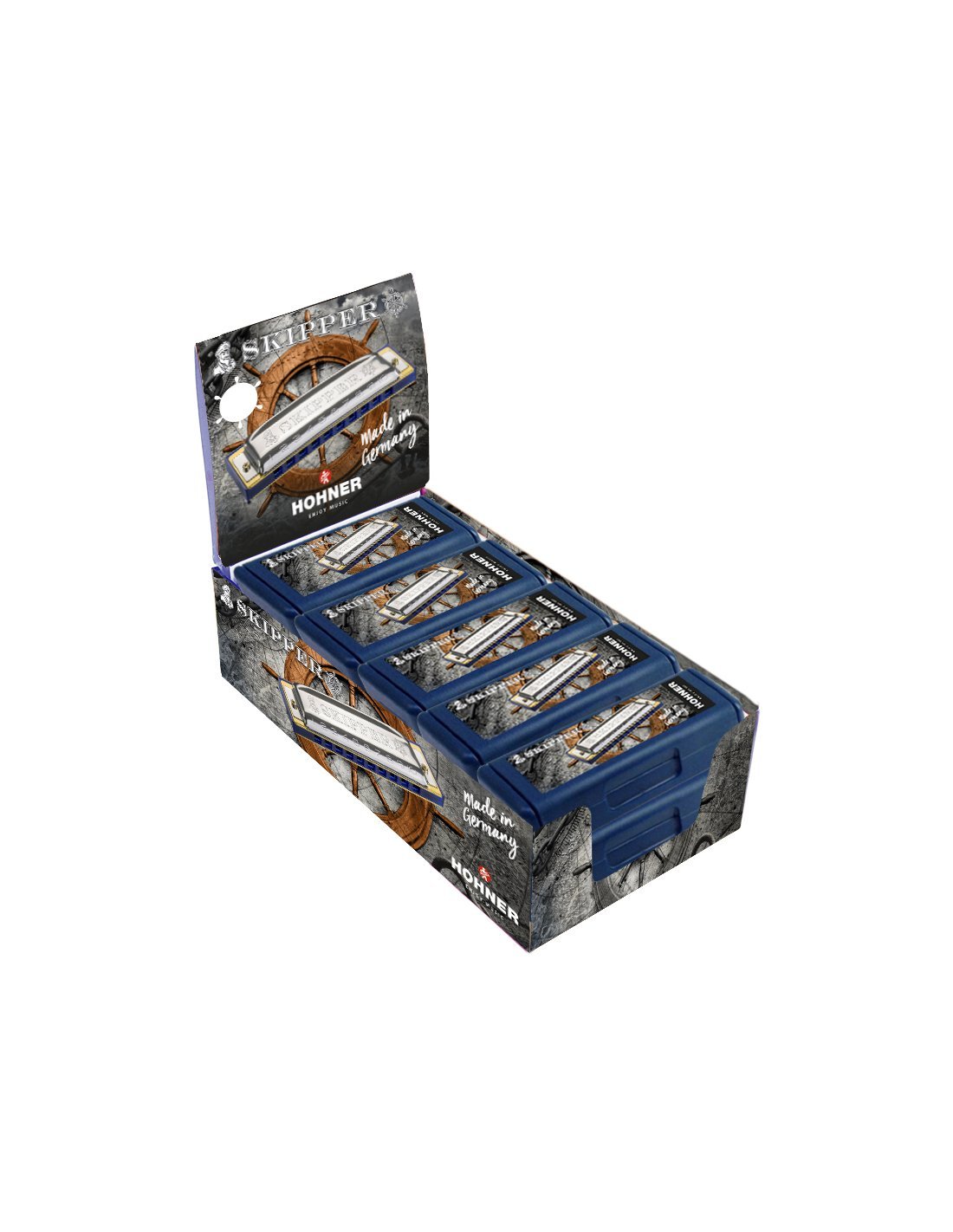 Skipper in DO, MS Series. Skipper is the ideal companion for seaside songs or for slow blues. With this harmonica, you'll get the authentic Hohner sound in any situation. Armonica Diatonica MS series. Pack of 20 units with counter display. Robust comb made of moisture-resistant plastic. Tuning C. The perfect souvenir for your beach vacation.