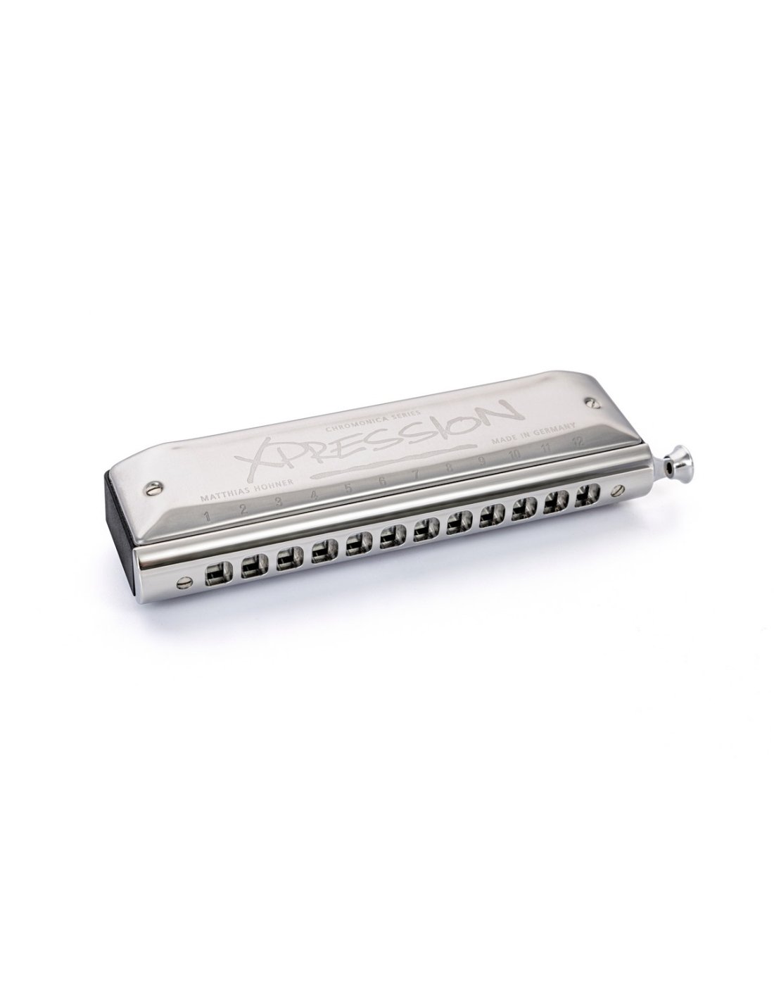 XPRESSION was developed in close collaboration with leading harmonicists and educators, both for beginners and advanced chromatic harmonica players. Thanks to the easy and fast tone response and the pleasant, full sound, it is perfectly suited to playing melodies of different musical styles. Features: - CNC-milled stainless steel mouthpiece with excellent sliding properties and for maximum comfort of the musician. - Ergonomically shaped stainless steel cover for comfortable use - Robust and sound-optimized ABS comb - Reed plates made to ensure maximum air tightness - Precision-machined brass reeds capable of withstanding intensive use - All components are assembled with screws to facilitate maintenance