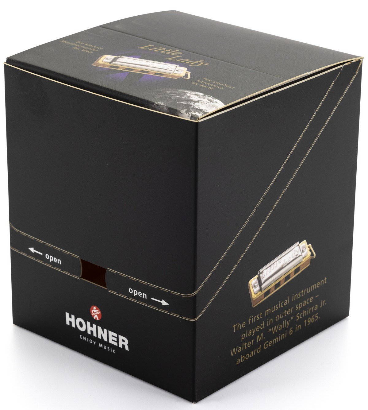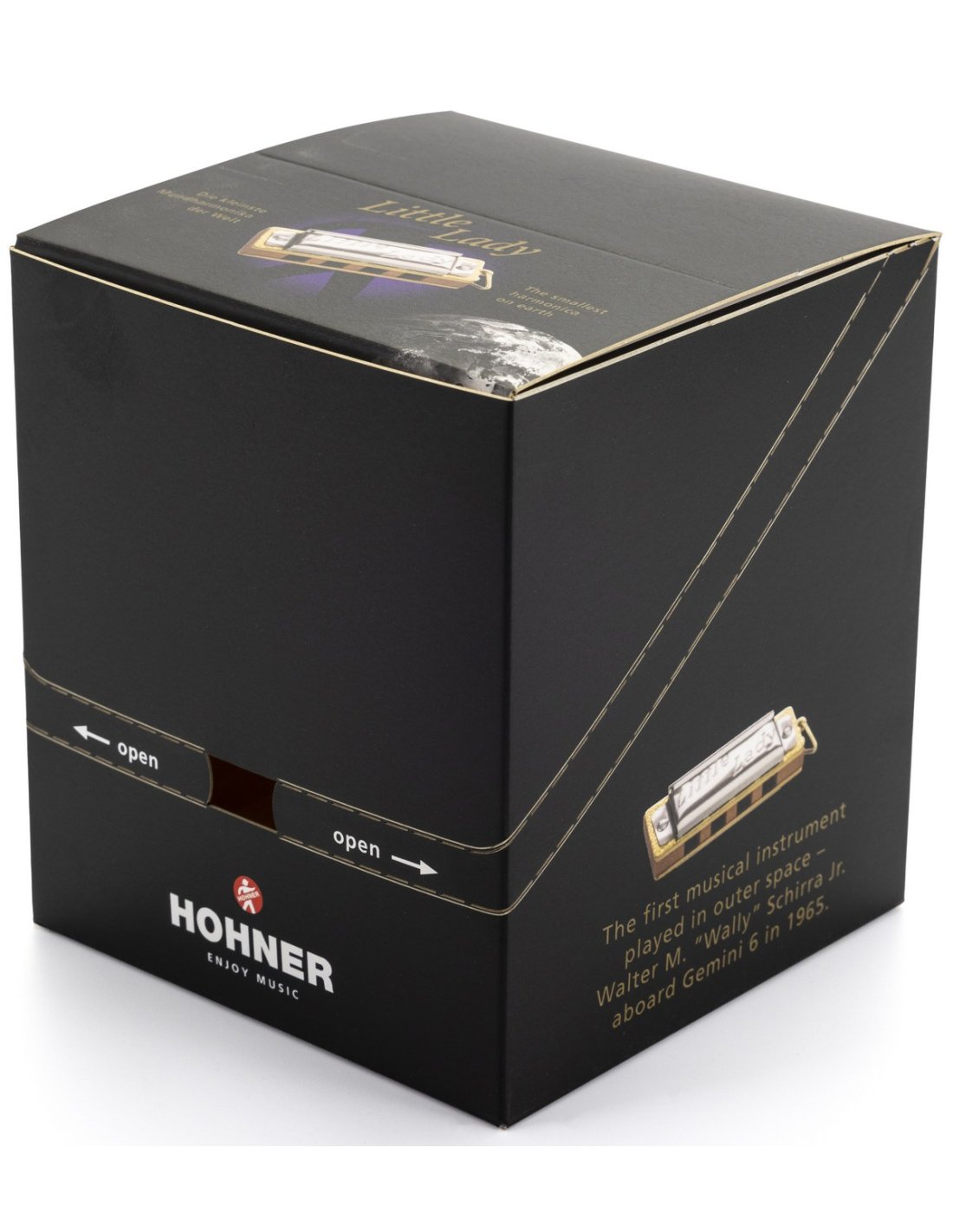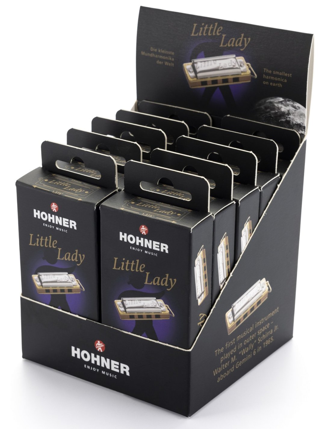 What a great story! On December 16, 1965, the Little Lady became the first musical instrument to be played in space, when Walter Shirra, commander of the Gemini 6 mission, surprised mission control ahead of Christmas with a unique interpretation of 'Jingle Bells'. Today, the Little Lady remains a very popular gift item and souvenir. It is fully playable and is built exactly like its older sisters. -Display of 10 units - High-quality pear wood comb - Carefully tuned brass reeds - Full scale in C major, suitable for many simple melodies - Solid stainless steel tops with original Little Lady engraving - Practical and durable 2-piece case made of impact-resistant plastic - With metal eyelet for key ring or necklace