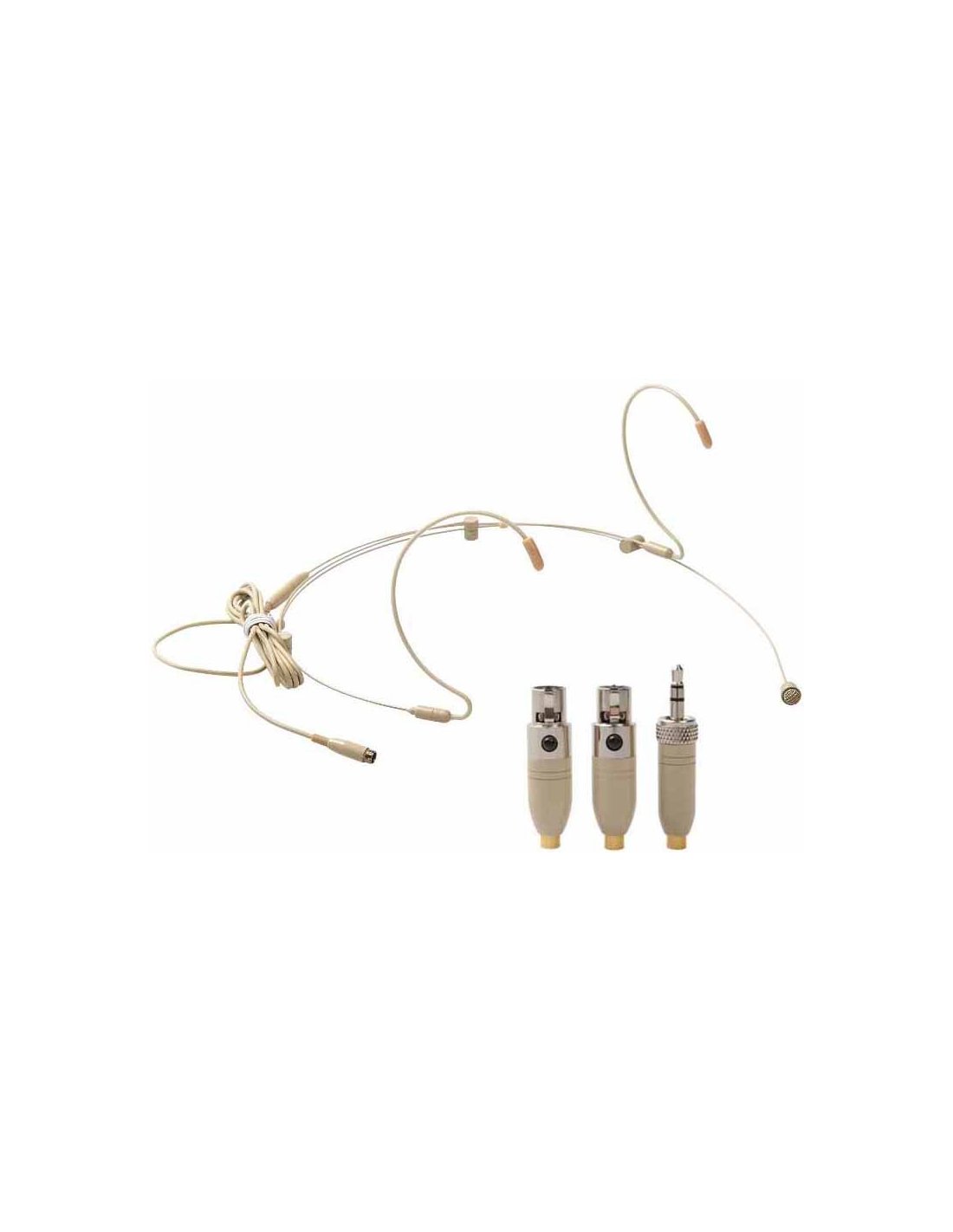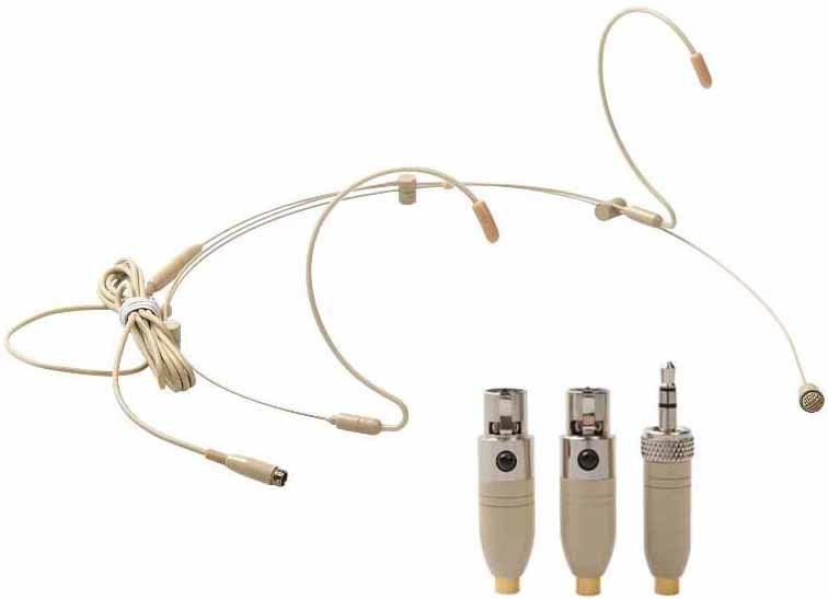EIKON HCM08 PRO. Leather-colored multi-connector headband microphone. Technical features include double windscreen filter to protect the diaphragm, omnidirectional polarized condenser capsule, 3 connectors: 4-pole XLR, 3.5 mm mini JACK, 3-pole mini XLR for maximum compatibility with wireless transmitters