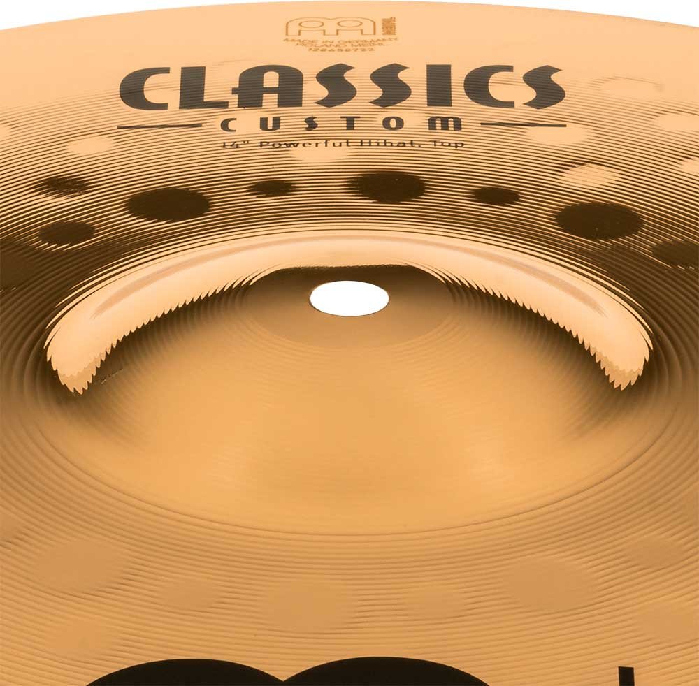 'Hi-hat 14" Powerful, Classics Custom Series. The Classics Custom series cymbals are mechanically produced in Germany with a B10 alloy. The process involves various techniques, both pressing and computerized hammering. In addition to this, they receive a glossy lacquer that gives them a spectacular glossy finish.