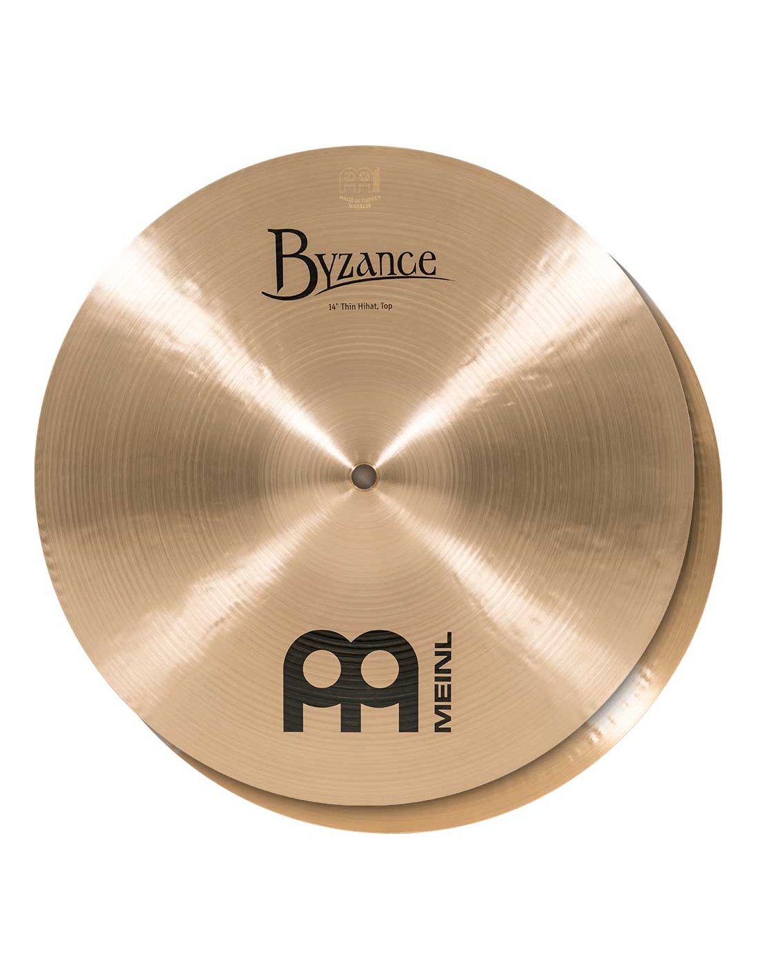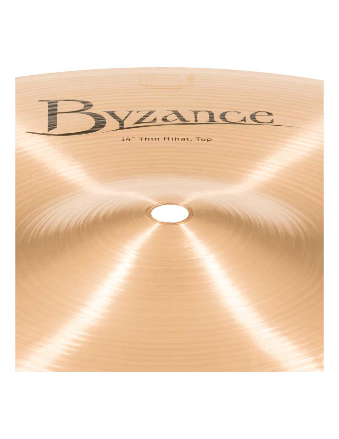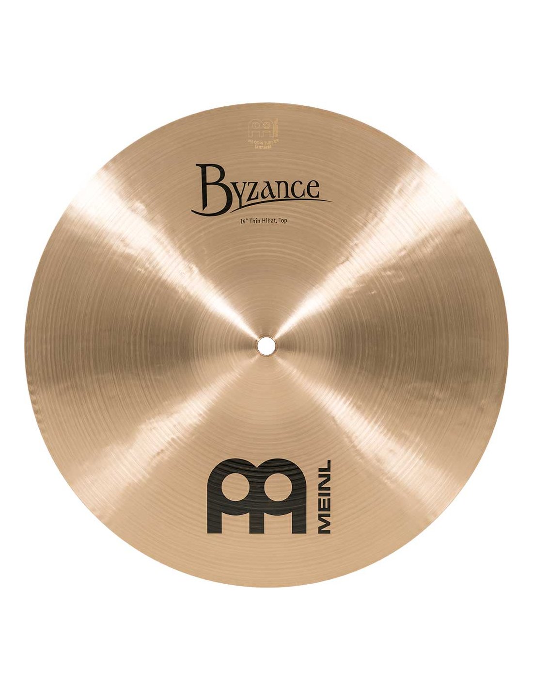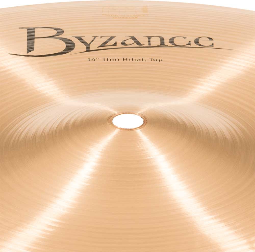 'Hi-hat 14" Thin, Byzance Traditional Series. Byzance Traditional Series plates are handcrafted in our factory in Turkey by specialists and respecting tradition throughout the process. All plates are made with B20 bronze alloy discs. Various techniques are involved in the process, both hammering and turning. The traditional finish gives the series the classic Turkish cymbal sound we've been hearing for over a century.
