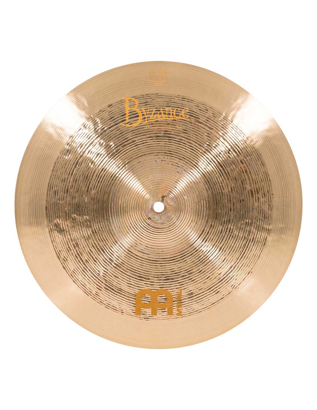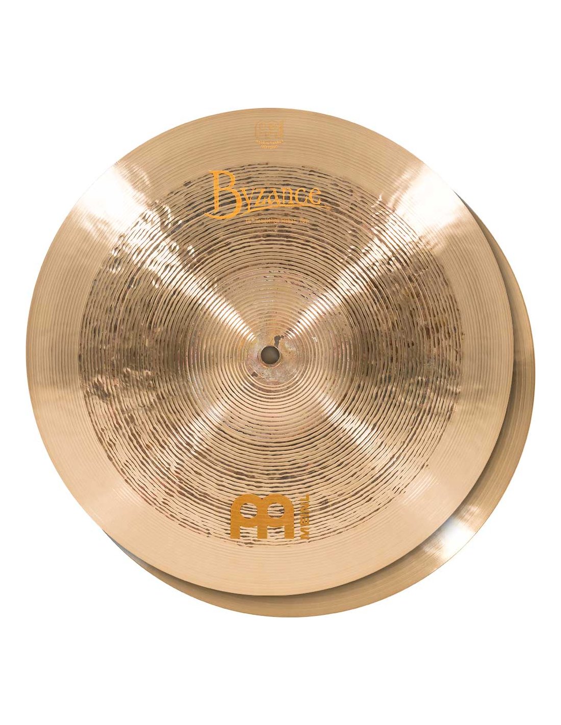 'Hi-hat 14" Tradition, Byzance Jazz Series. The Byzance Jazz series plates are handcrafted in our factory in Turkey by specialists and respecting tradition throughout the process. All plates are made with B20 bronze alloy discs. Several techniques are involved in the process, both hammering and turning. The fine turning together with the massive hammering makes this series a sound cushion for any pop, jazz, fusion environment....