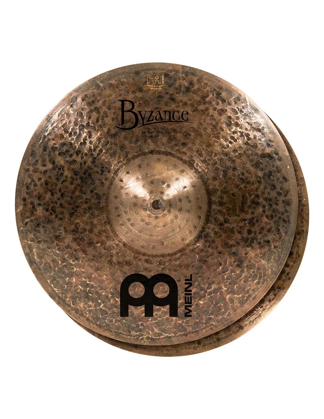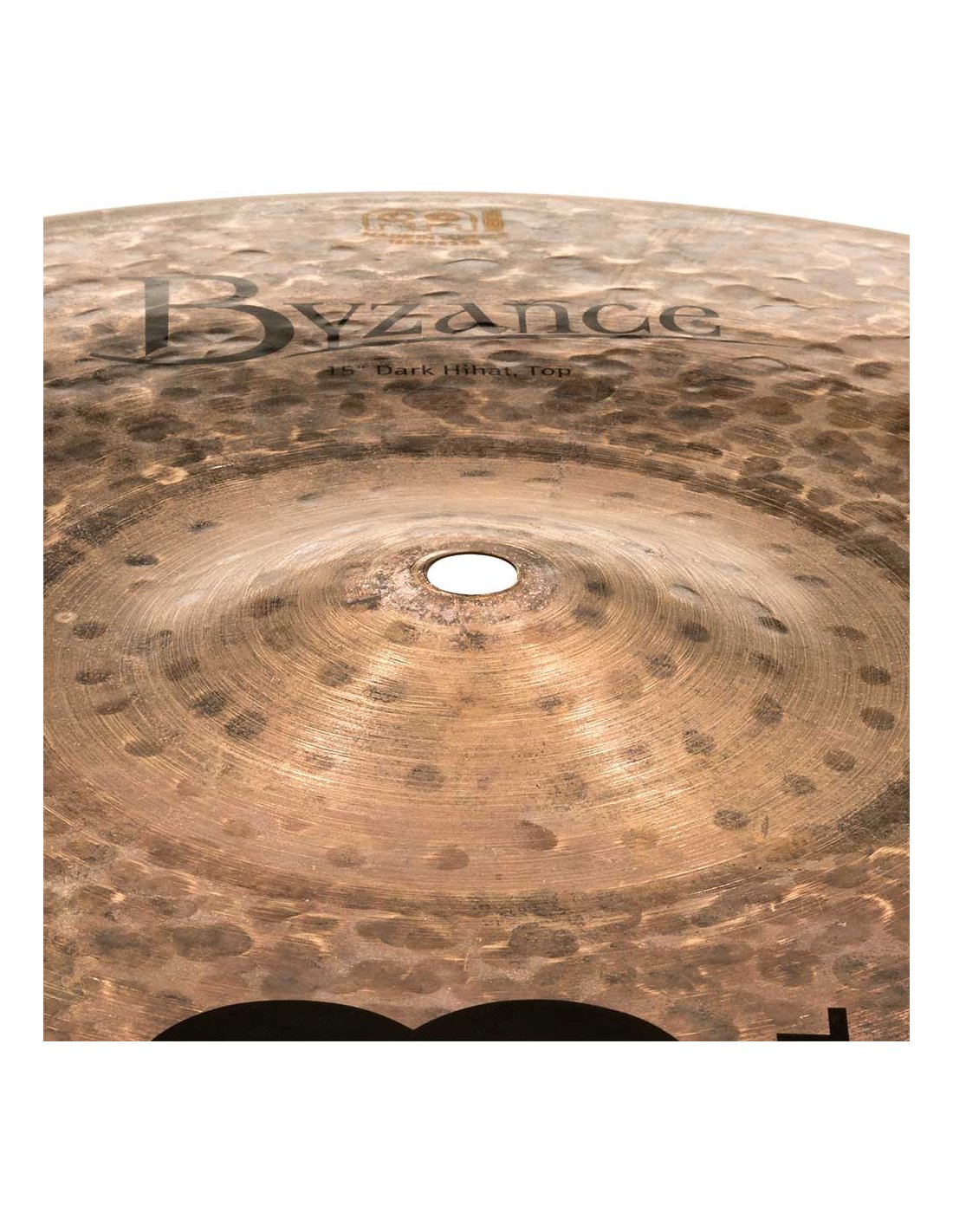 'Hi-hat 15', Byzance Dark Series. The plates of the Byzance Dark series are handcrafted in our factory in Turkey by the hands of specialists and respecting tradition throughout the process. All plates are made with B20 bronze alloy discs. Various techniques are involved in the process, both hammering and turning. The Dark Unturned finish gives each cymbal a defined sound with little sustain. Really nice in the mix.