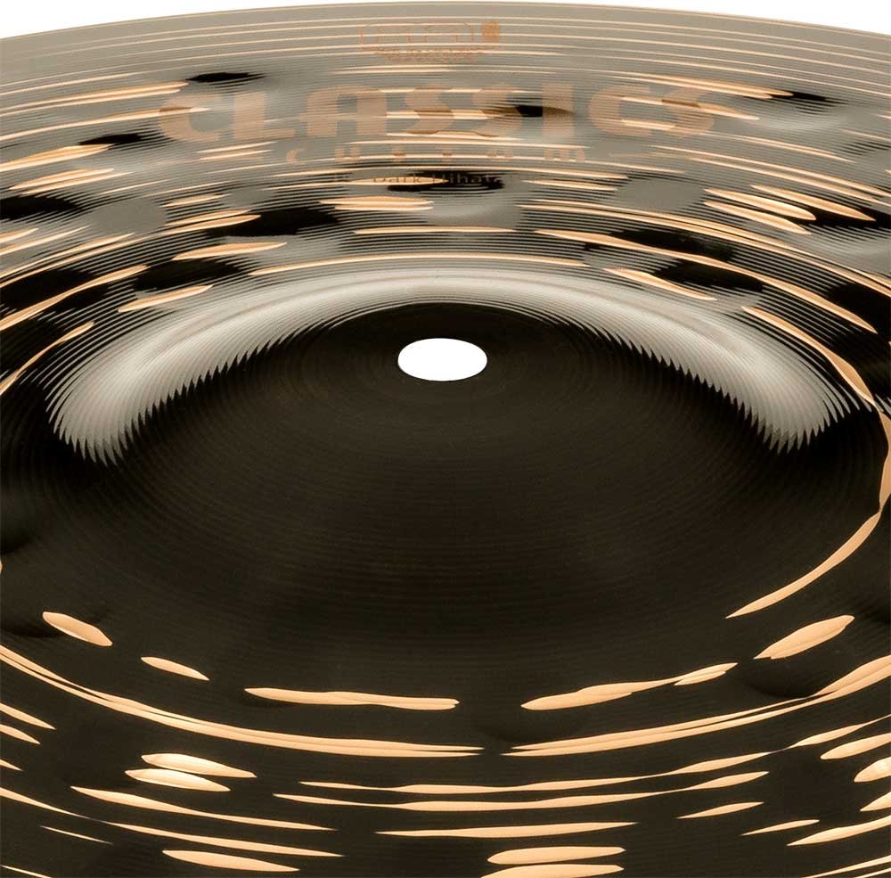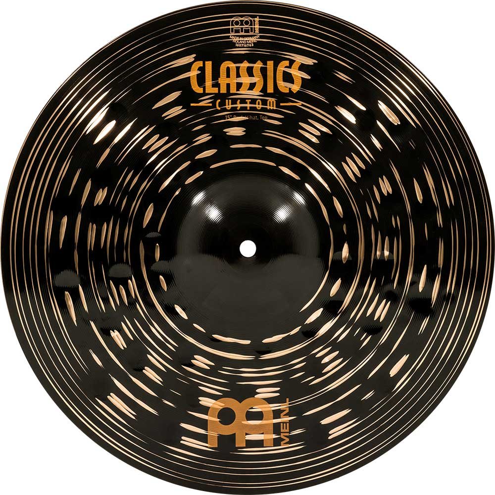 'Hi-hat 15" Classics Custom Dark Series. The Classics Custom Dark series cymbals are mechanically produced in Germany on B10 alloy. The process involves various techniques, both pressure and computerized hammering. In addition, they have a glossy black finish that gives them a spectacular appearance and a particular sound.