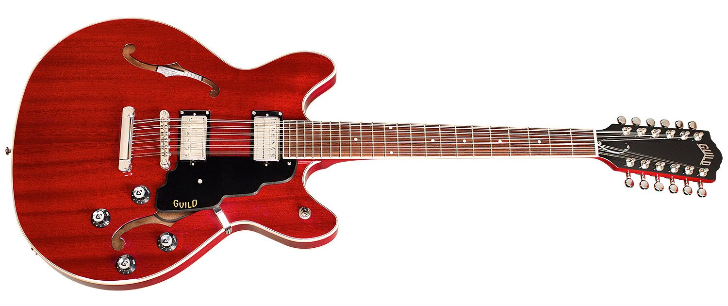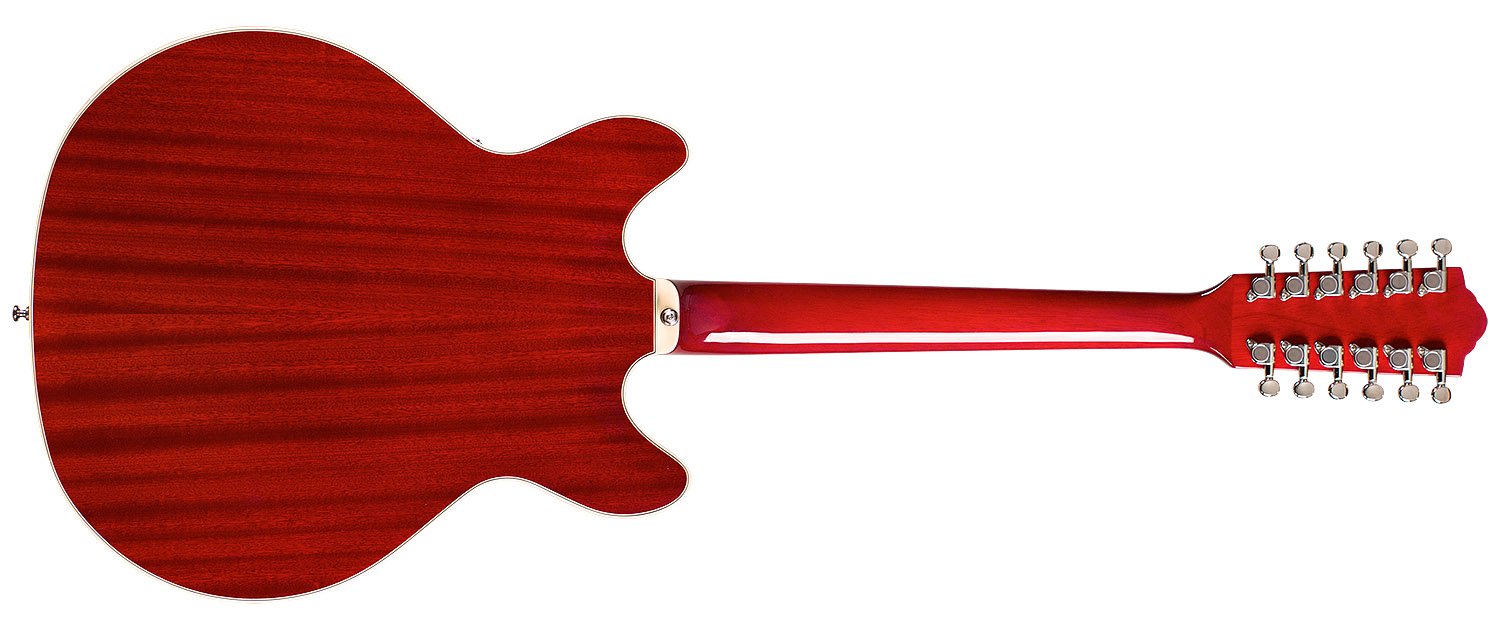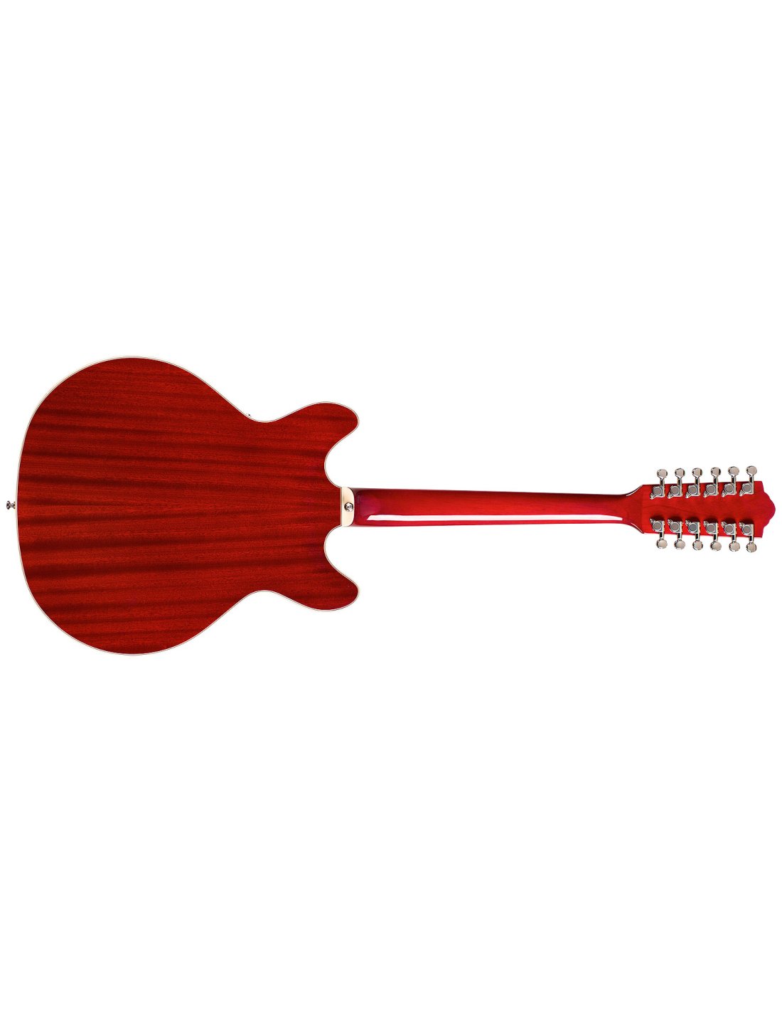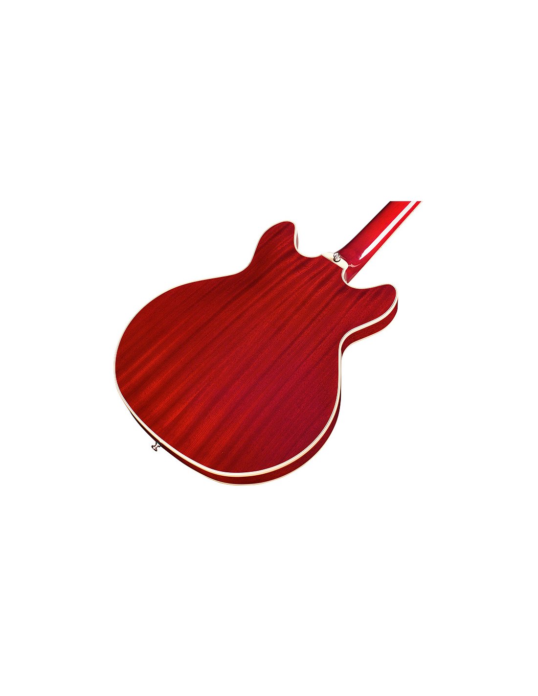 Inspired by the double cut shape made famous by the Starfire IV, V, and VI, the Starfire I-12 is a 12-string guitar with a semi-hollow body, made with a central mahogany block to reduce feedback and have excellent sustain. Starfire I-12 features an elegant arched (with two F) mahogany top, as well as the back and sides. The length of the scale is 24.75” (629 mm) the mahogany neck has a modern slim “U” profile for excellent playability. The Guild Vintage Premium Mechanics have a ratio of 18:1, the Tune-o-matic bridge with string attachment ensures easy tuning and great pitch hold. An injection of vintage sound is guaranteed by the Guild HB-2 Alnico II humbuckers, the push-pull allows you to split the pickup coils according to your needs. The bindings and purfling are made of ABS. Cherry Red glossy polyurethane finish.