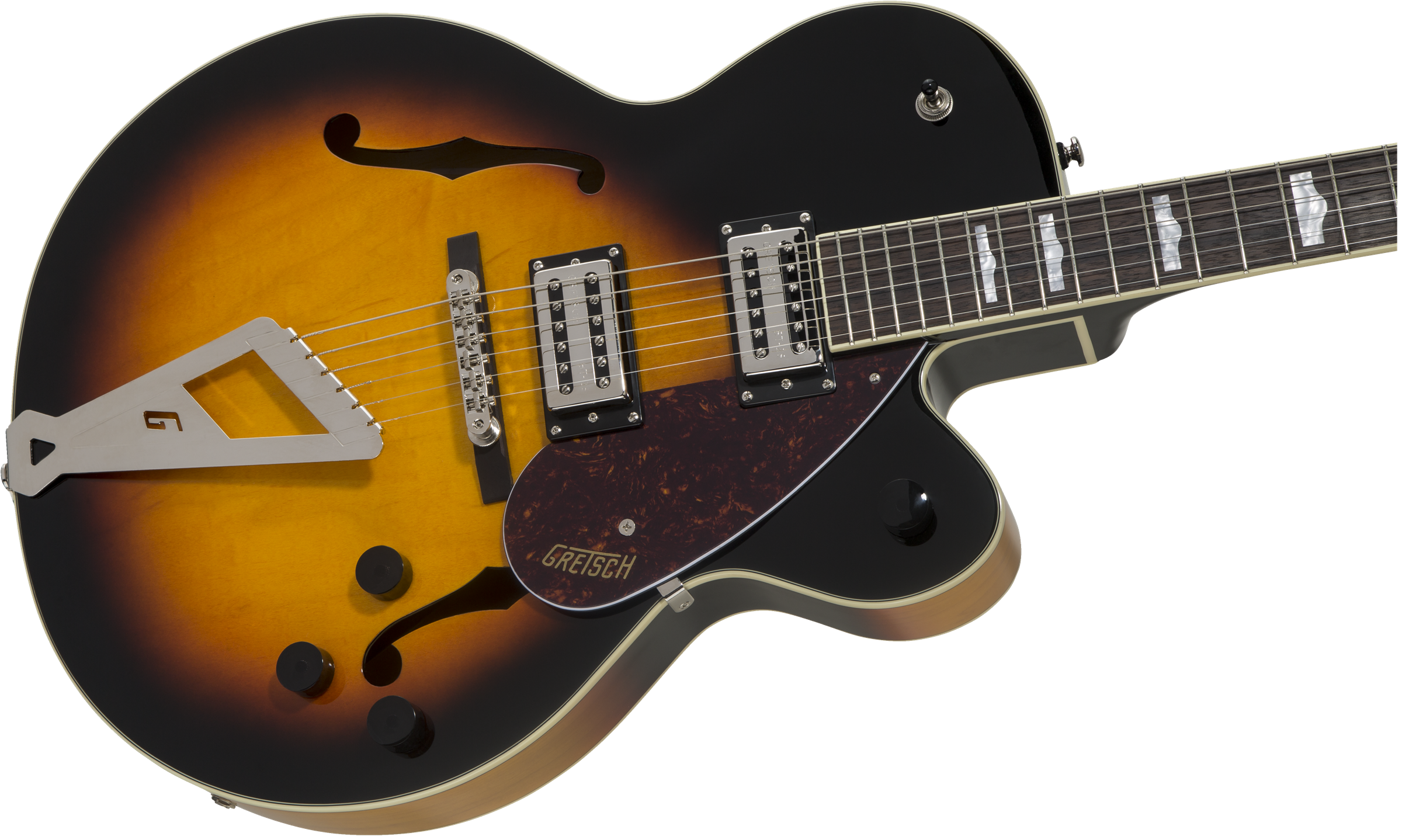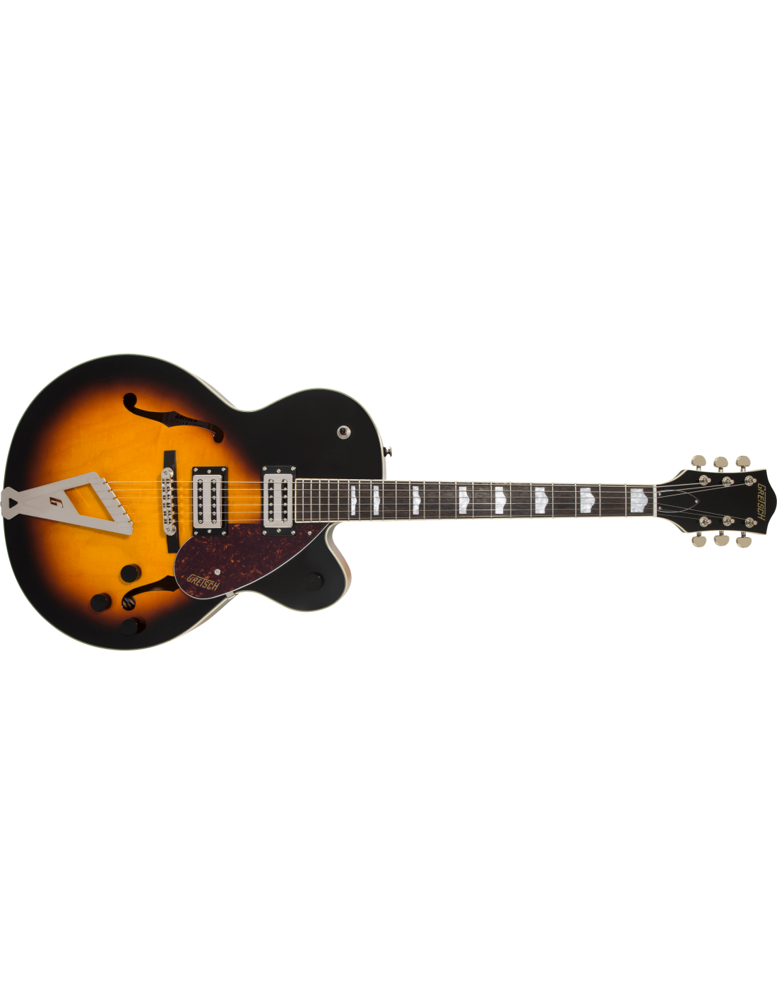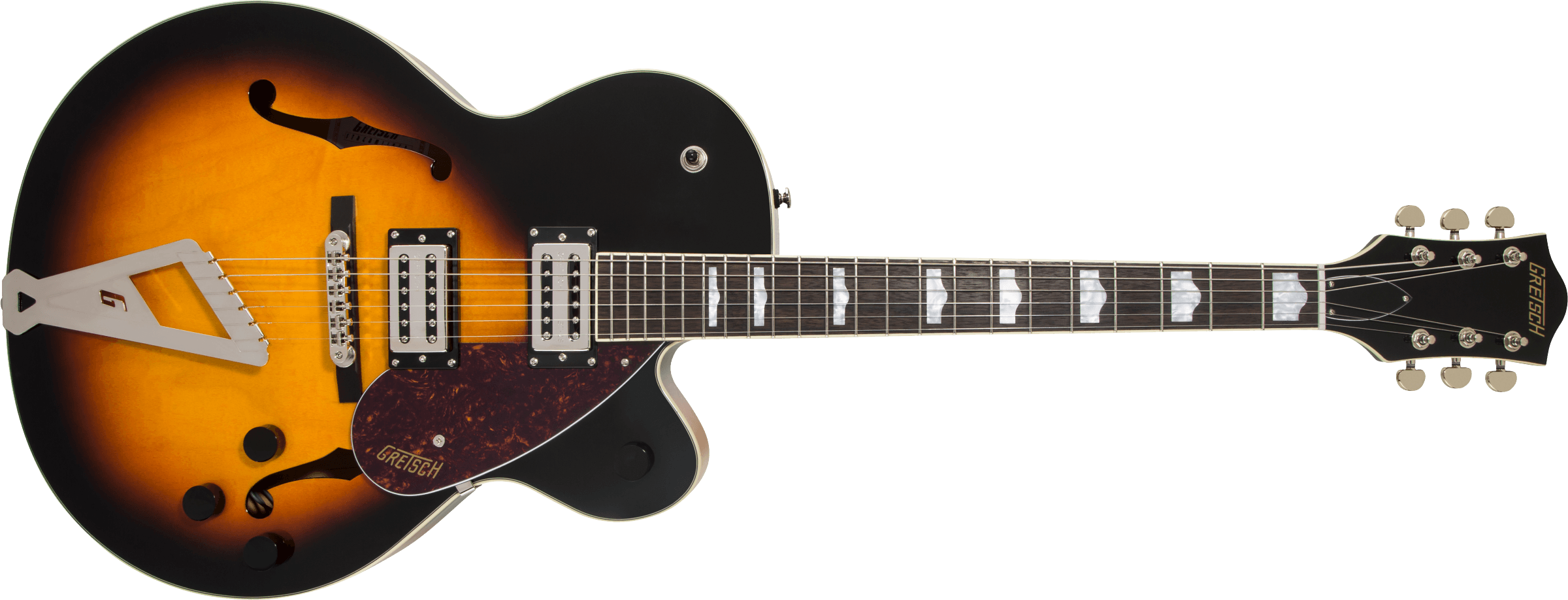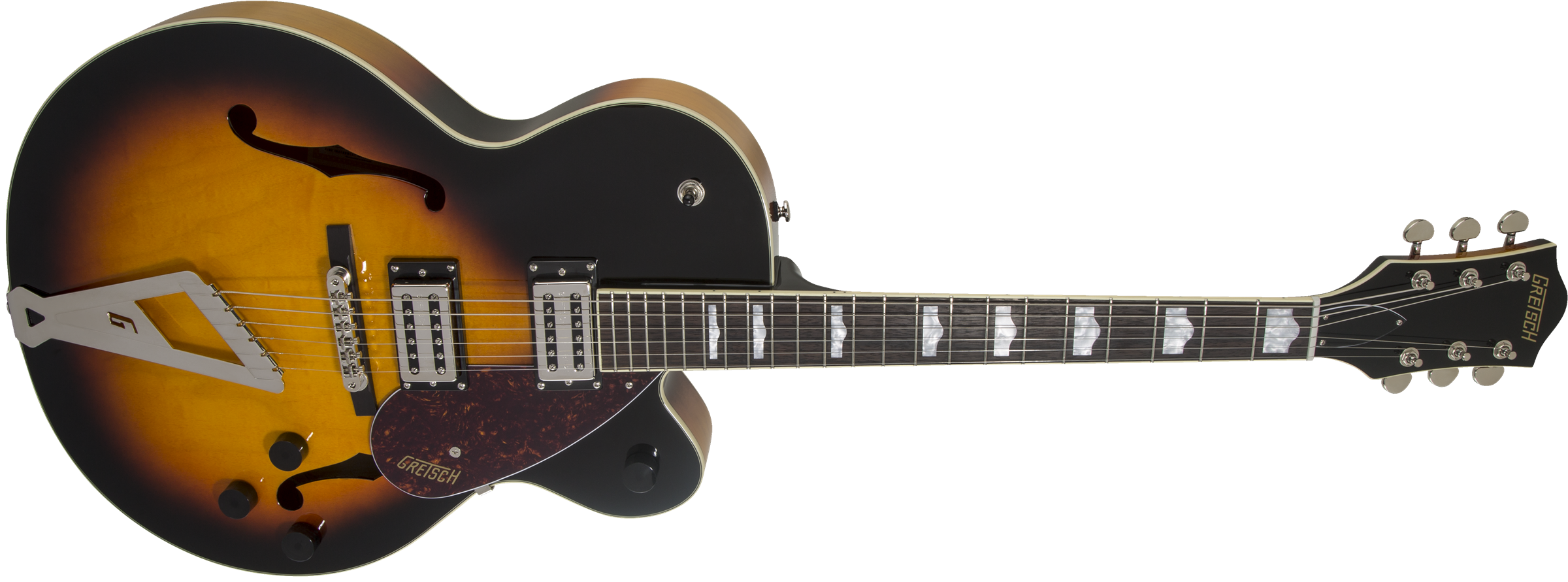 Gretsch G2420 Streamliner Hollow Body Electric Guitar color AGED BROOKLYN BURST. The Gretsch G2420 Streamliner is a 6-string hollow-body electric guitar. Technical features include laminated Maple body, Nato neck with Thin “U” profile, Laurel fingerboard, 22 medium jumbo frets, Broad'Tron BT-2S Humbuckers pickup, Volume/Volume/Tone/Master Volume controls and 3-position selector, Adjusto-Matic bridge with Chromatic II tailpiece. Chrome-plated hardware