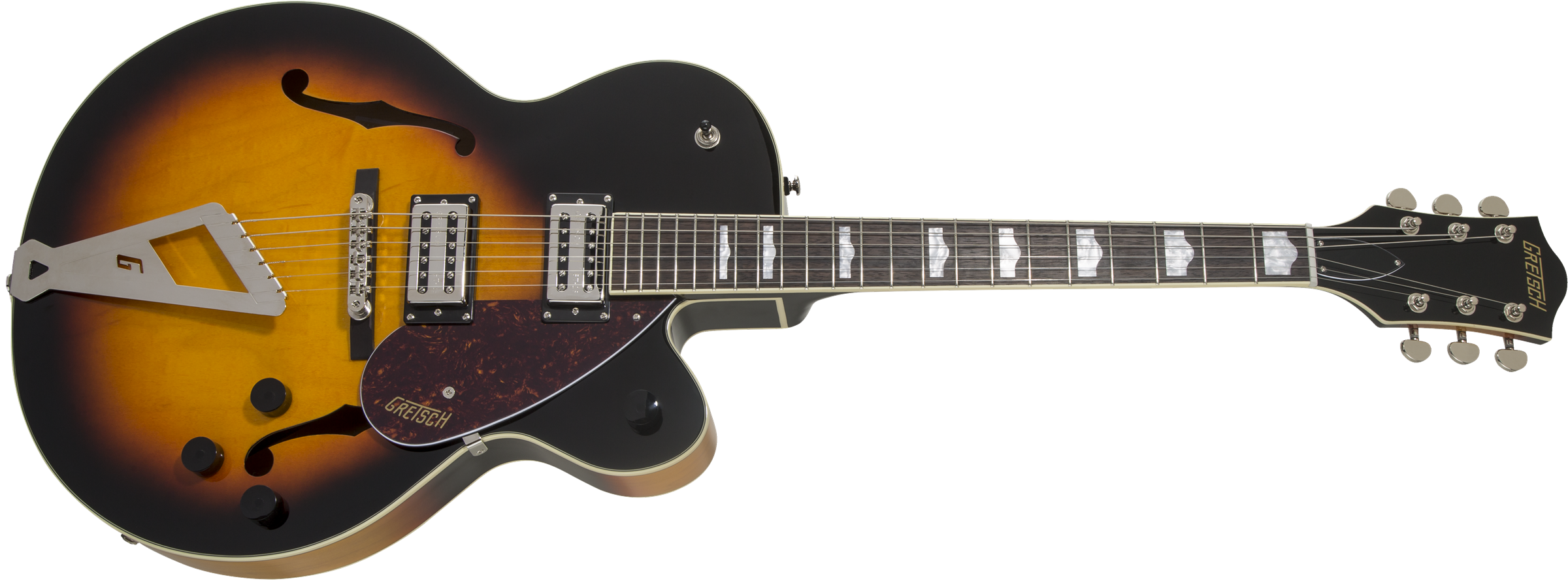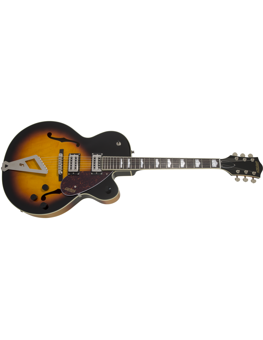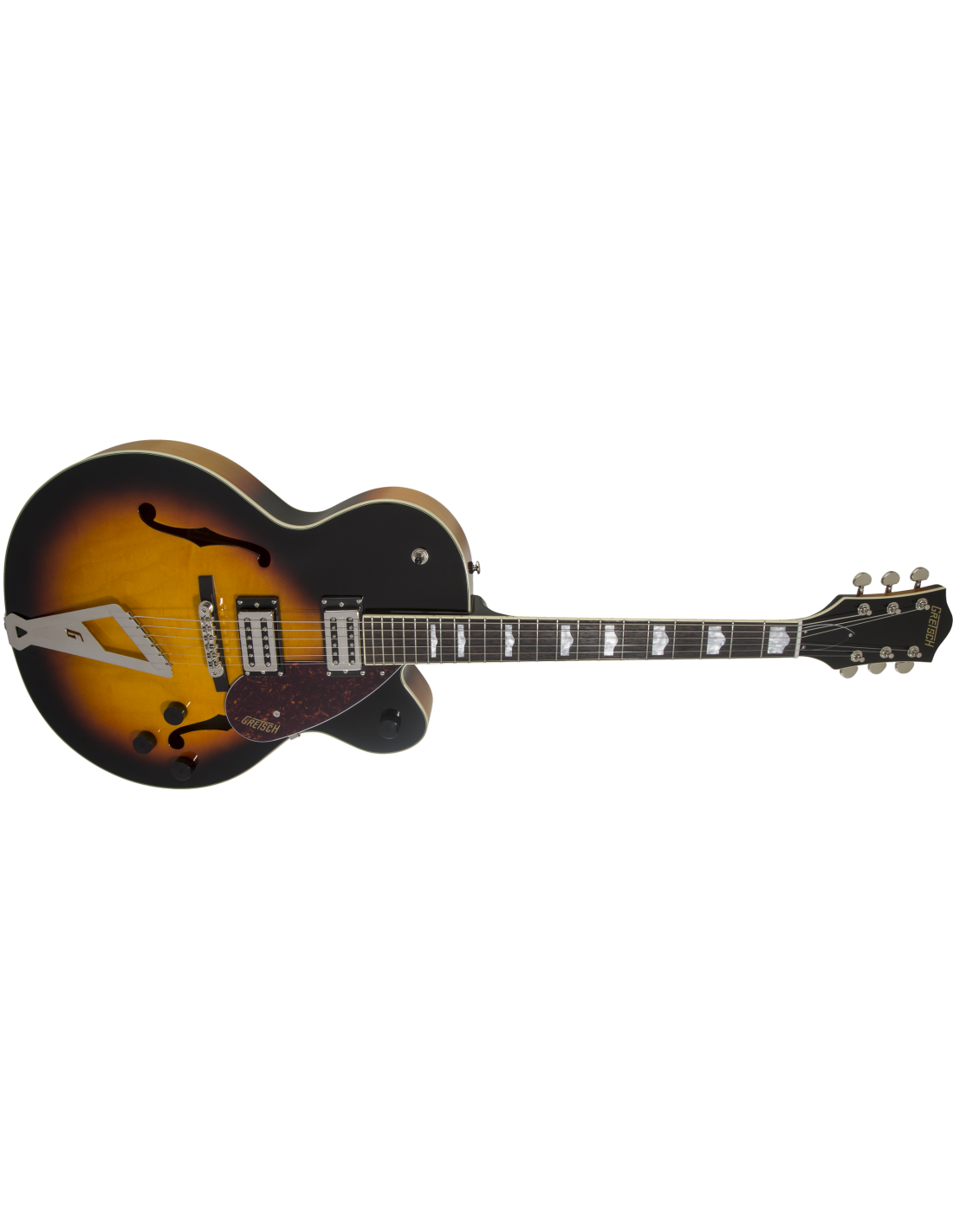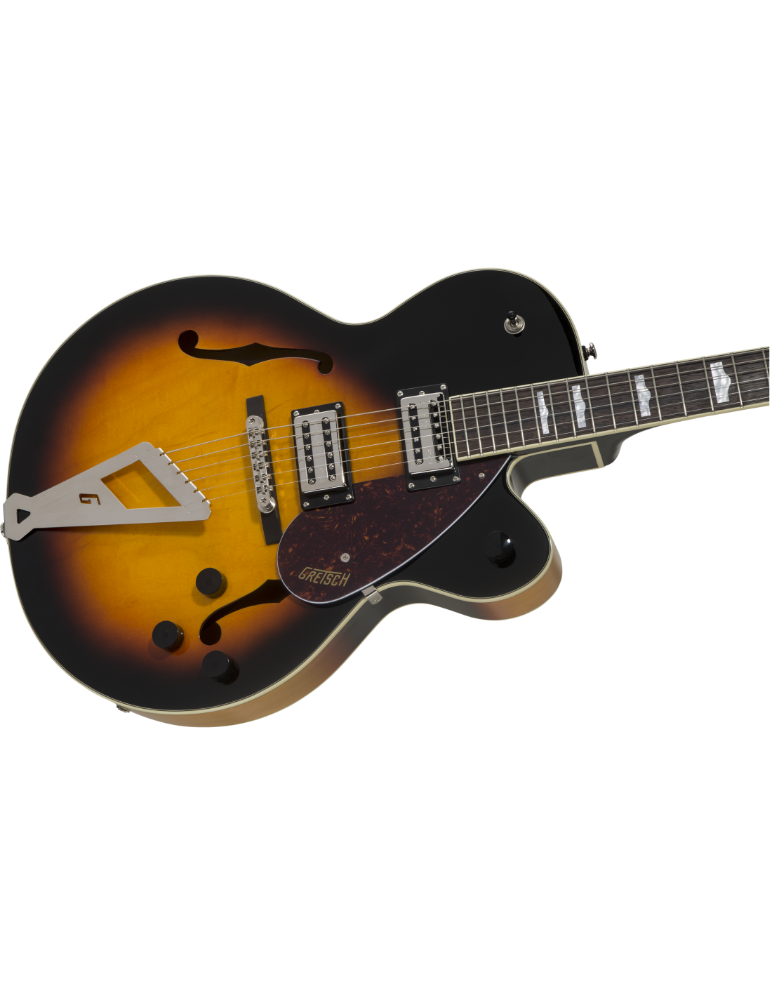 Gretsch G2420 Streamliner Hollow Body Electric Guitar color AGED BROOKLYN BURST. The Gretsch G2420 Streamliner is a 6-string hollow-body electric guitar. Technical features include laminated Maple body, Nato neck with Thin “U” profile, Laurel fingerboard, 22 medium jumbo frets, Broad'Tron BT-2S Humbuckers pickup, Volume/Volume/Tone/Master Volume controls and 3-position selector, Adjusto-Matic bridge with Chromatic II tailpiece. Chrome-plated hardware