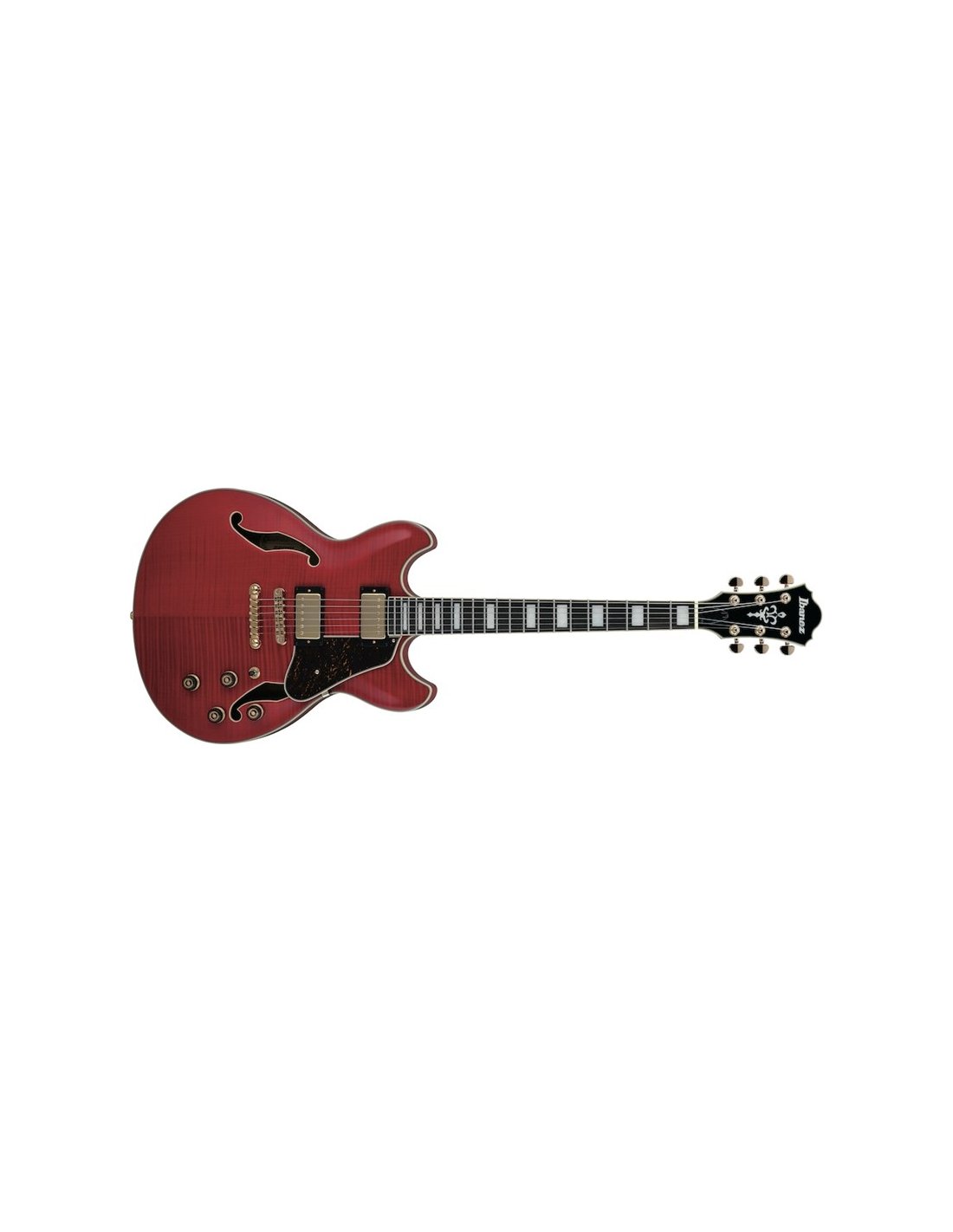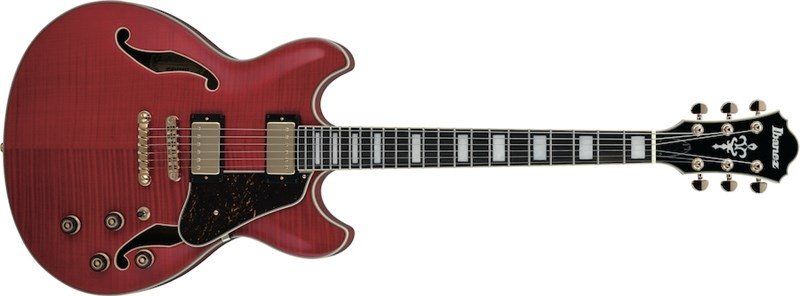 Ibanez AS93FM-TCD Semi-Hollow Body Electric Guitar color TRANSPARENT CHERRY RED. The Ibanez AS93FM-TCD is a 6-string semi-hollow body electric guitar. Technical features include body with flamed maple top, back and sides, Expressionist AS 3pc nyatoh/maple neck, ebony fingerboard, 305mm radius, 22 medium frets, Super 58 pickup (neck/bridge). Gold hardware.
