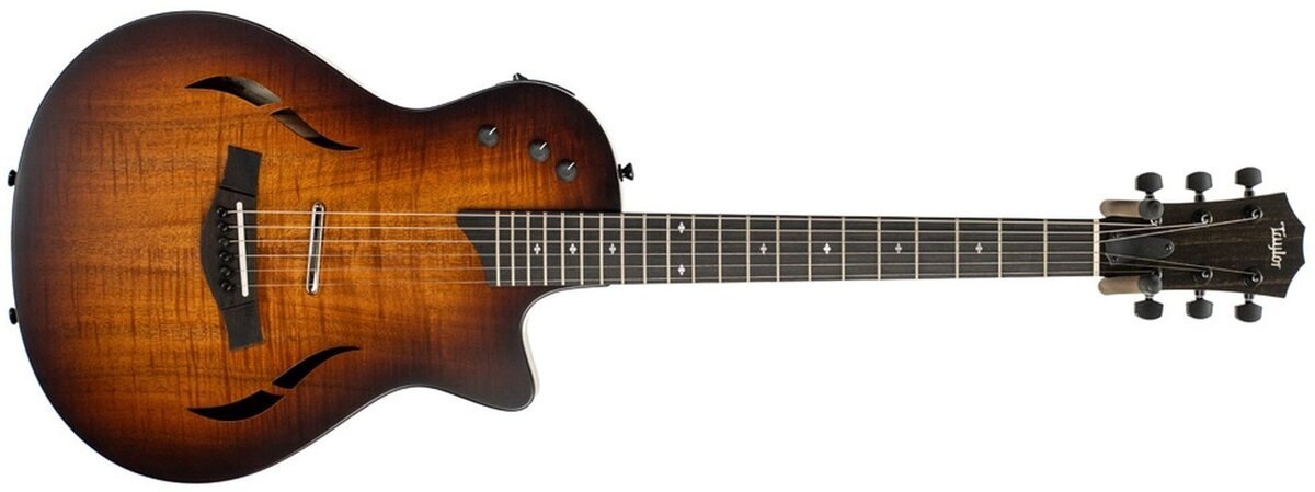 Taylor T5z Classic Koa Top Electroacoustic Guitar color SHADED EDGEBURST. The Taylor T5z Classic Koa Top is a 6-string electroacoustic guitar. Technical features include sapele body, koa top, tropical mahogany neck, ebony fingerboard, 21 Jumbo frets, acoustic sensor in the body, humbucker on the neck and humbucker on the
