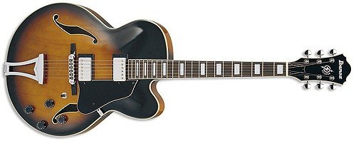 Ibanez AF75-SB Hollow Body Electric Guitar color BROWN SUNBURST. The Ibanez AF75-SB is a 6-string hollow-body electric guitar. Technical features include maple body with top, back and sides, Artcore mahogany neck, rosewood fingerboard with mother-of-pearl Block inlays, 305mm radius, 20 medium frets, ART-1 bridge, ACH1 (neck) and ACH2 (bridge
