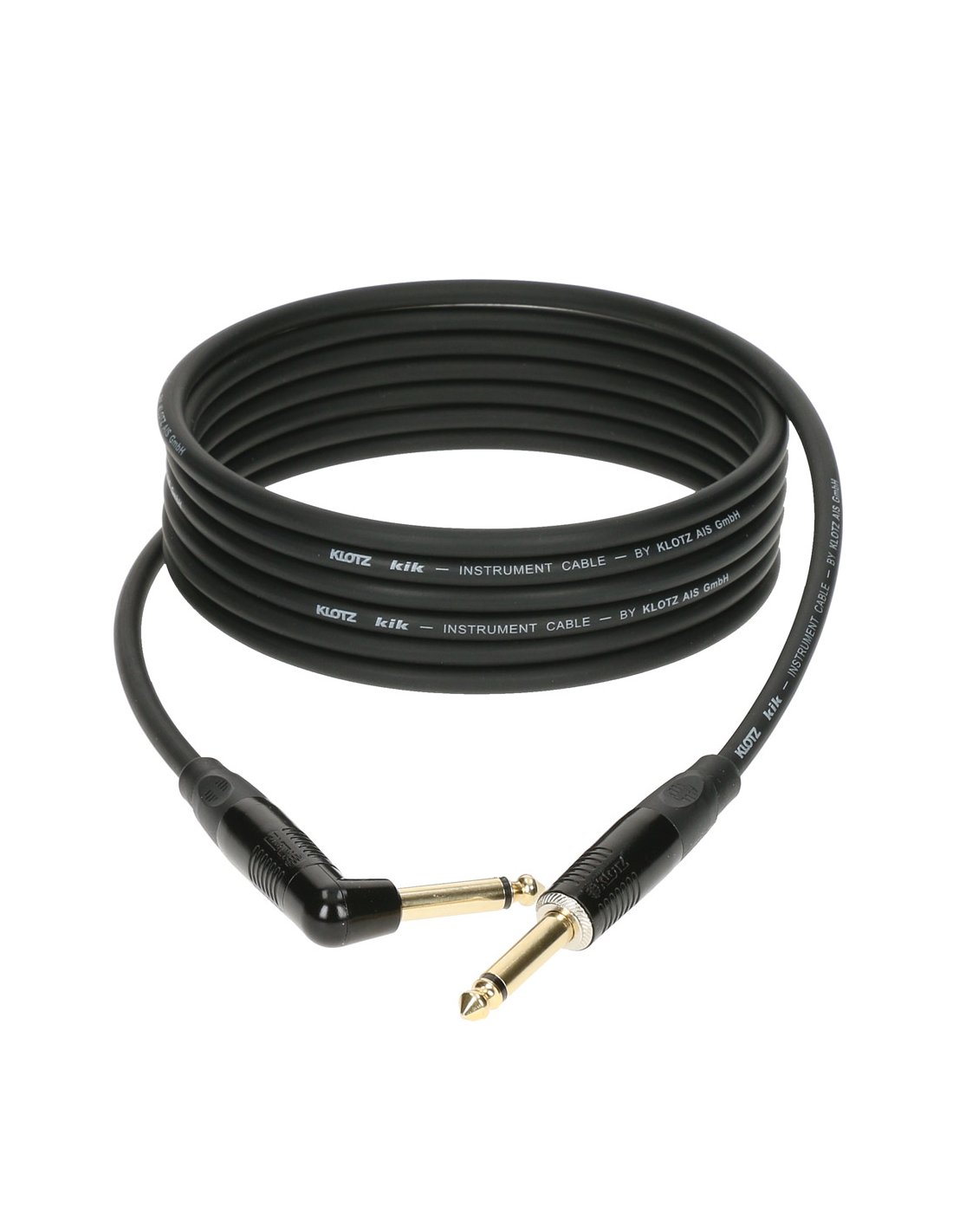 Cavo per chitarra, basso o tastiera Guaina ultra flessibile con spirale protettiva Connettori jack Klotz in metallo Connettore jack da 6,35 mm placcato oro massiccio Suono caldo e ricco Jack dritto/angolato Lunghezza 3 metri