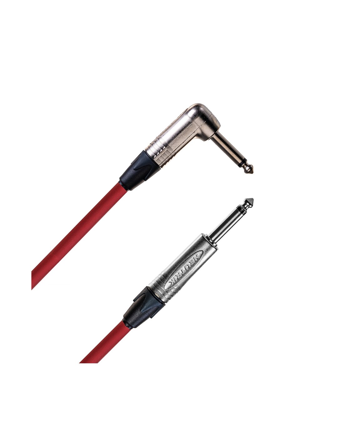 The Quik Lok Quicksilver A5 is a musical instrument cable equipped with 2 Neutrik NP2X male mono jack connectors, one straight and one angled.