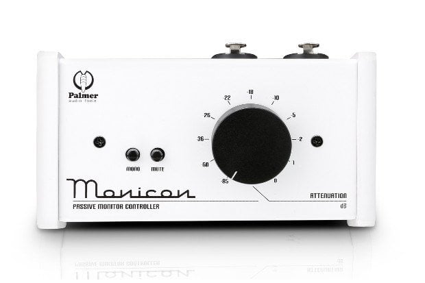 The Palmer Monicon White is a passive monitor controller equipped with an input through a pair of unbalanced XLR combo connectors or an input through a 3.5 mm stereo jack and an output through a pair of combo XLR connectors or another 3.5 mm jack plug.