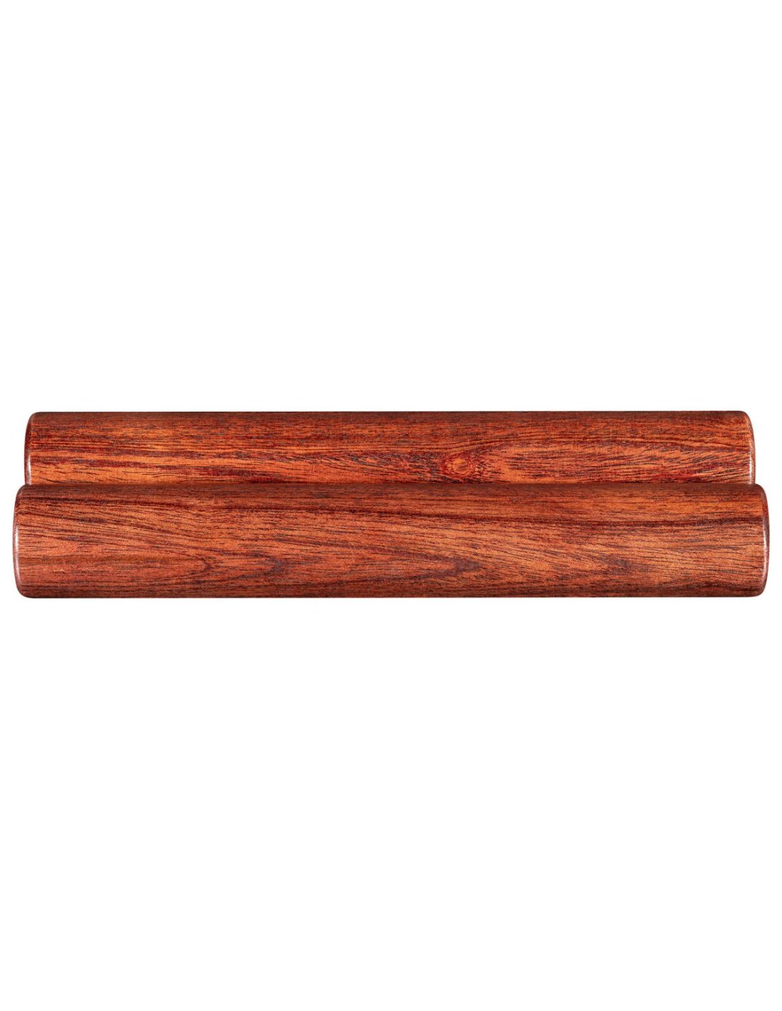 'Made from dense Indian walnut, the Meinl Percussion Wood Claves offer a classic tone and a clear, penetrating attack most commonly associated with African and Latin American rhythms. Their solid construction allows for a projection powerful enough to cut through dense mixes and large ensembles on stage, in the orchestra pit, or in a studio environment. Measuring 8” in length and 1 in diameter, these clubs will fit comfortably in any situation, providing an exceptional attack. An understated logo, attractive coloring and beautiful wood grain give these clubs a clean, traditional look. Music educators and drum circle facilitators will particularly appreciate their ease of use and convenience. Use multiple pairs to help students or beginners develop a better sense of rhythm. Features: Classic pitch and clear and decisive attack Solid construction Traditional look 8º long and 1 1/4Ó thick Material: Walnut