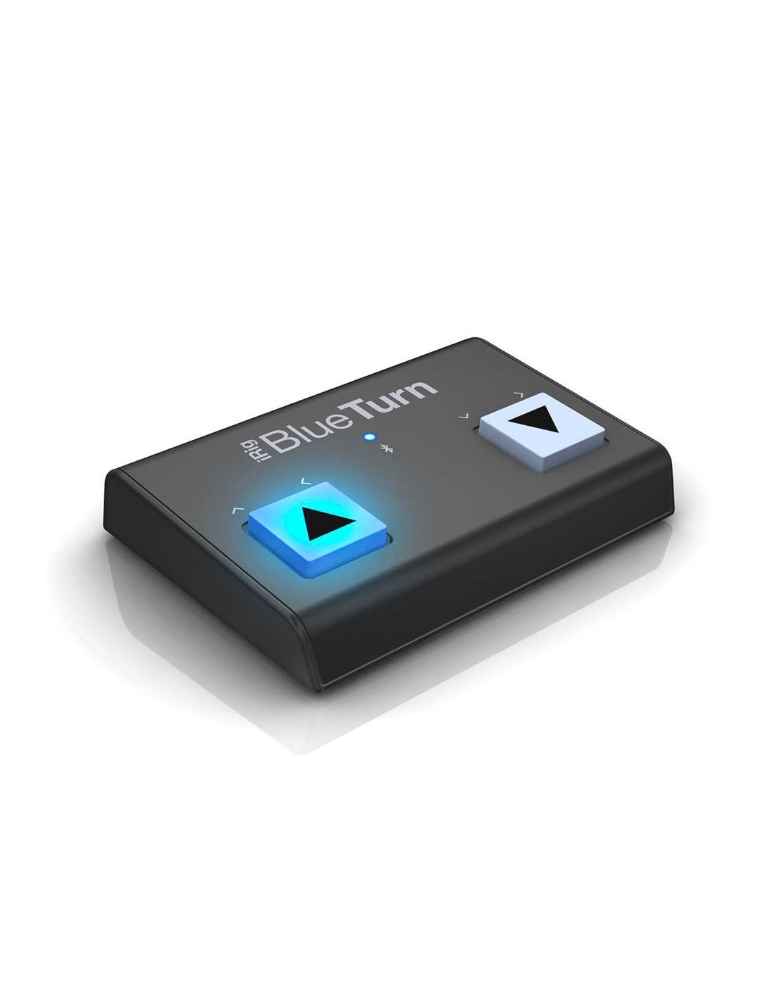 IK MULTIMEDIA iRig BLUETURN is a Bluetooth controller that allows you to scroll through pages of digital scores on a Tablet/Smartphone, with 2 backlit control pads and assignable functions such as Page Up/Page Down, Arrow Up/Arrow Down, or Arrow Left/Arrow Right. It is powered by 2 AAA batteries.