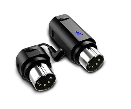 XVIVE MD1 WIRELESS MIDI SYSTEM is a Bluetooth MIDI transmitter for connecting instruments with DIN MIDI connectors to iOS/Mac OSX devices. Technical features include transmission of all MIDI messages, power supply via MIDI Out/Thru, 3ms latency, Bluetooth 5 connection, Bluetooth Low Energy and Bluetooth 4.0, Automatic Pairing,
