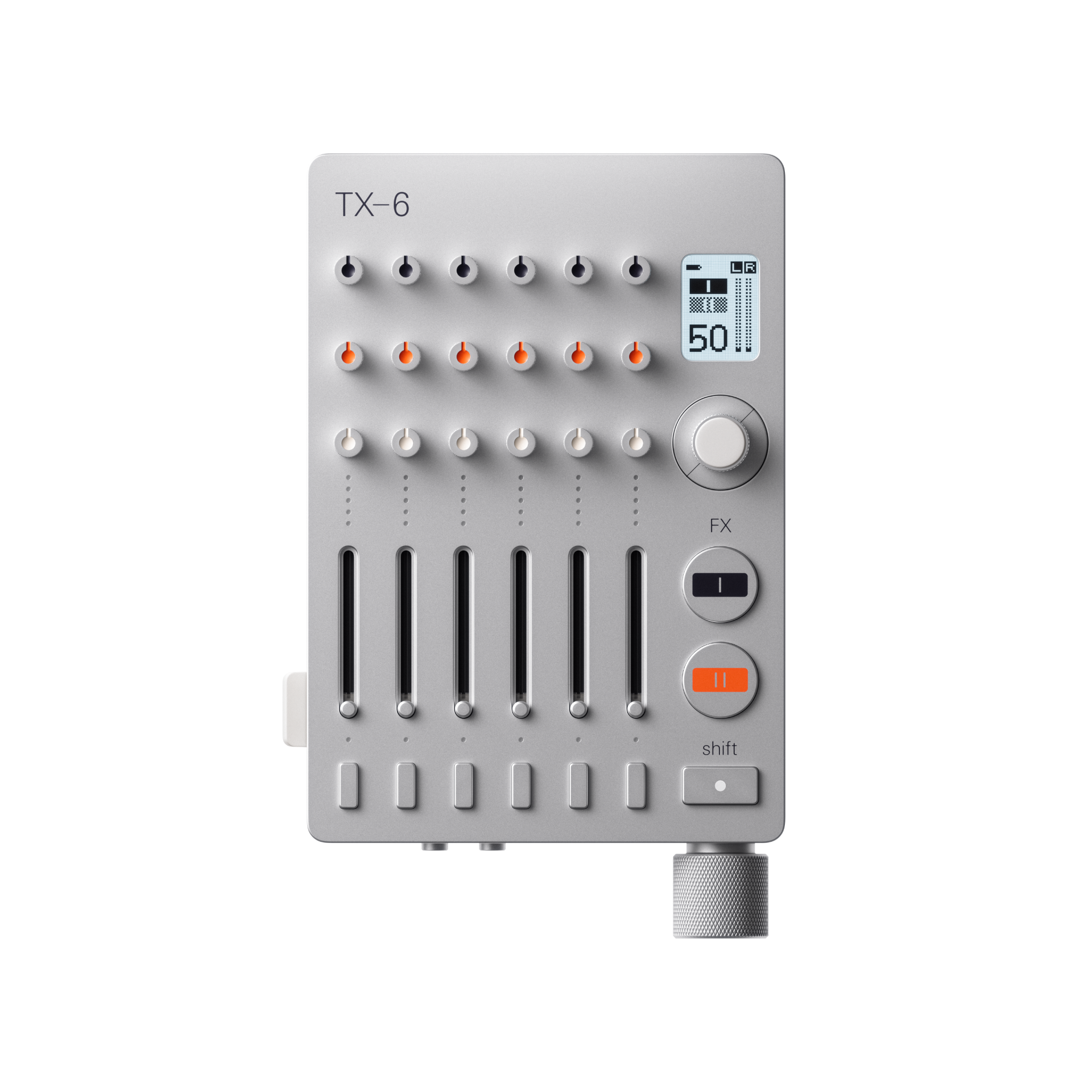 TX-6 6-channel stereo mixer field mixer is the new ultra-portable mixer with integrated audio interface from teenage engineering. TX-6 is a 6-channel stereo, or 12-channel mono, mixer with built-in equalizer, filters, compressor, aux sends, cues and digital effects. This ultra-portable mixer can also be used as a multifunctional USB audio interface. Some interesting extras are also included, such as an instrument tuner and an integrated sound generator with 4 waveforms and 4 drum machine sounds, allowing you to create musical tracks practically anywhere. The interface is completely customizable, you can choose whether to have the three-band equalizer available, or program each potentiometer to control your preferred settings. A small jewel of design, as per the Swedish brand's custom, TX-6 has a sturdy aluminum case with custom-designed encoders and faders. The rechargeable battery makes it completely portable so you can carry it hassle-free from home to the studio, or wherever you want. TX-6 is the first of a series of products conceived and designed by teenage engineering to revolutionize standard concepts of musical production.Available as accessories, bags and dedicated cables.Main features6 stereo inputs/3 stereo outputs/microphone support/USB audio/MIDI headset-built-in effectsCompatible with iPhone and iPad (MFi) Bluetooth low energy OLED displayRechargeable batteryDimensions 90 mm (102 mm with adapter) x 62.5 mm x 15 mm (23 mm with encoder)