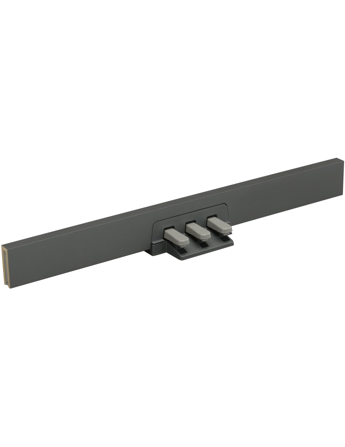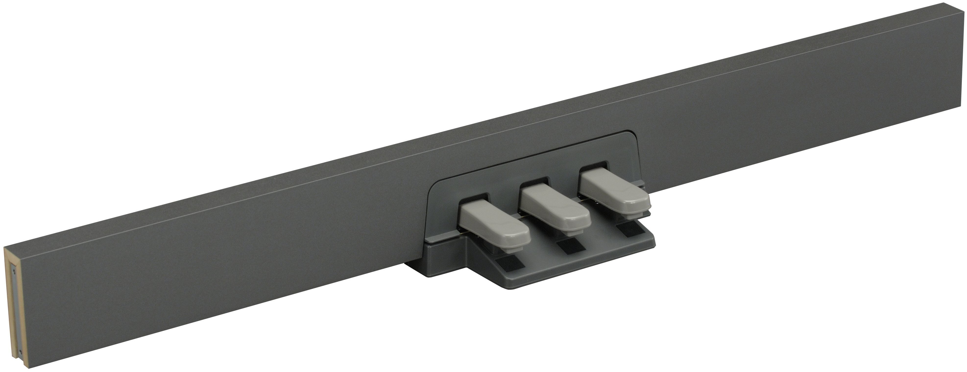 Three piano-style pedals with the same type of functional sustain, sustained, and muted control found in large pianos.