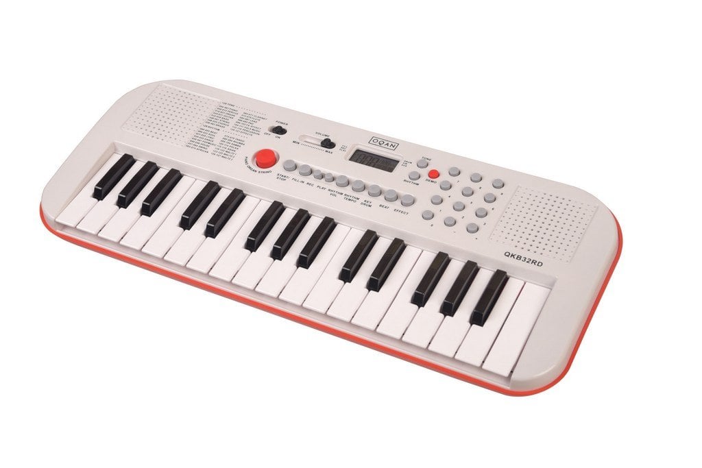 The Oqan QKB32 keyboards are the ideal gift for the little ones in the house, ready to enter the fantastic world of music. Available in 2 colors - white/red and white/blue - their attractive and fun design and complete features, offer infinite musical possibilities with easy and intuitive management. 32 Mini Keys, 128 Voices/128 Styles, 30 Demo Songs, Metronome, Vibrato/Sustain Functions, Keyboard Percussion, Recording/Playback Functions, Battery Power (6 x AA - not included) or through the integrated micro USB port. DC power input (not included), Headphone Output, Dimensions: 470 x 200 x 51 (mm).