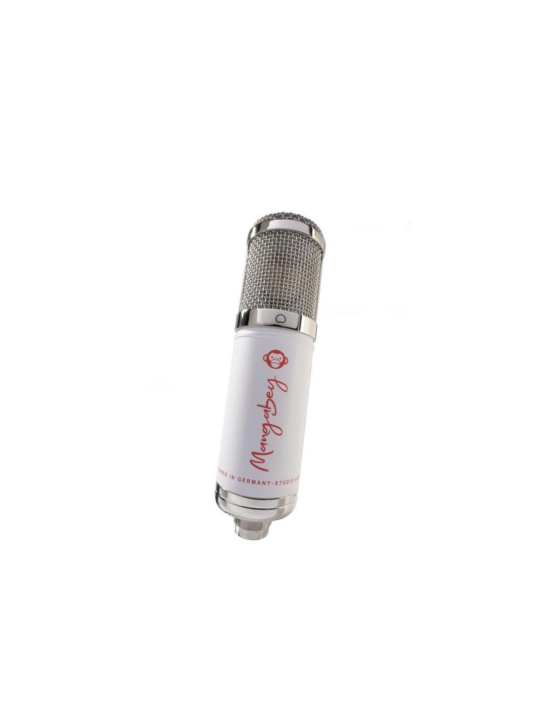 Large diaphragm tube microphone The Mangabey tube microphone is characterized by 9 different polar patterns, from omnidirectional to the figure of 8, through the cardioid and other intermediate patterns. In the studio, it can be used for various applications.The 12AX7 valve, selected by hand, offers a warm and rich sound, perfect for any vocal or acoustic guitar pickup. The set includes the microphone, the power supply, the shock-mount, a 7-pin connection cable and a protective bag. The available colors are black, red, banana and white. Main Features: • Large Diaphragm Tube Condenser Studio Microphone • Capsule: 34 mm condenser • Hand-selected valve: 12AX7 • Polar pattern: Omnidirectional/cardioid /figure8/ 6 intermediate stages. • Frequency response: 20 Hz — 20 kHz • Max input SPL: 135bB (@ 1 kHz _/< 1% T.H.D.) • Output impedance: 100 Ohm (+/ -30%) (@ 1 kHz) • Sensitivity: -34 dB ±2 dB (0dB=1V/Pa @ 1 kHz) signal/noise: 80 dB • Power supply: external power supply (110-120 V/220-240 V, 50 Hz/60 Hz)