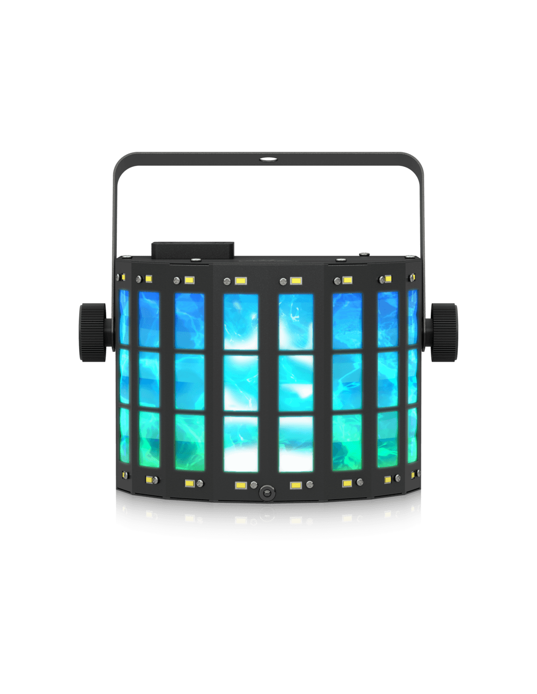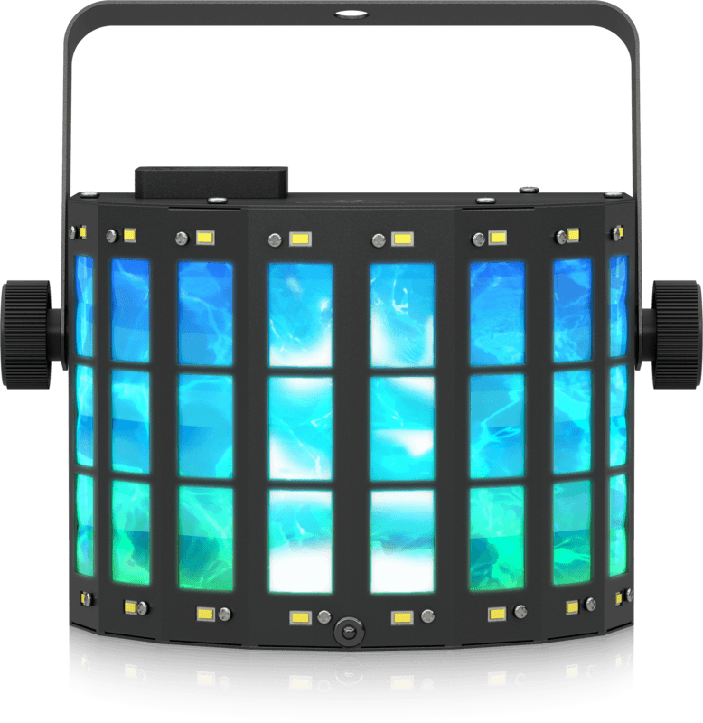 BEHRINGER LED DERBY DSL1 RGBW LED Derby light effect with different operating modes: Auto Mode, DMX 512, sound control or Master/Slave Mode. Technical features include 4 3W RGBW LEDs, Strobe mode with 16 0.5W white LEDs, integrated “Sound to Light” microphone module for timed operation, DMX input and output via XLR, integrated navigation display. It can work with the included IRC1 remote control or with a DMX console