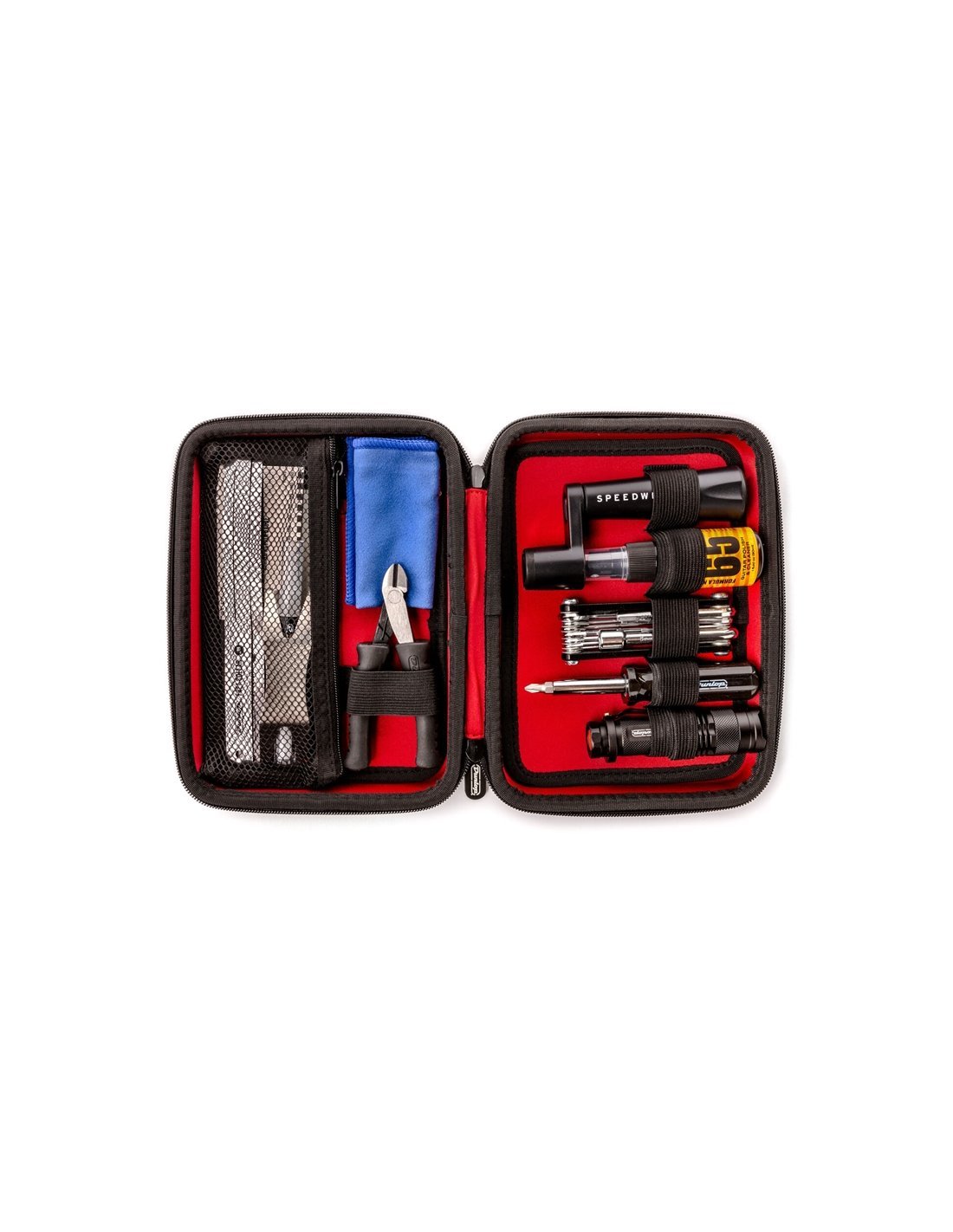 The DGT122 System 65™ Universal Complete Guitar & Bass Setup Tool Kit is a universal kit, usable for both guitar and bass. This kit comes complete with everything you need for a quick string change or a full setup. It contains a gel pen, a multifunction flashlight, a cloth for the keys, a screwdriver, the new DGT08 cutters, a multiple wrench, a Formula 65™ Polish & Cleaner, a tool for measuring the action and tools to protect the keys during cleaning (one 0.080" and one 0.125"
