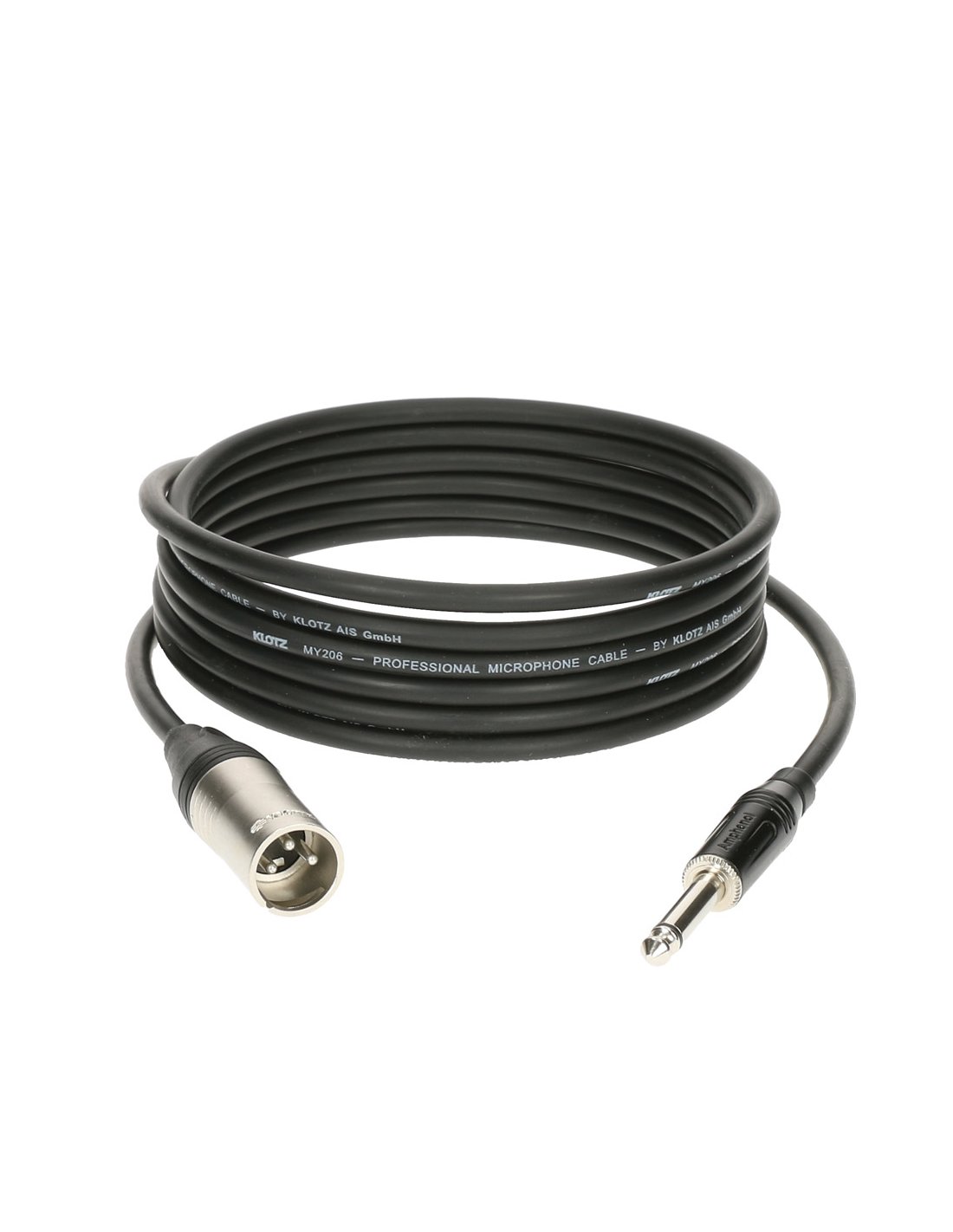 Cavo per microfono Guaina in PVC ultra flessibile con spirale protettiva Connessione XLR Klotz a 3 punti su jack Amphenol a 2 punti Sbilanciato XLR maschio/jack maschio Lunghezza 10 metri
