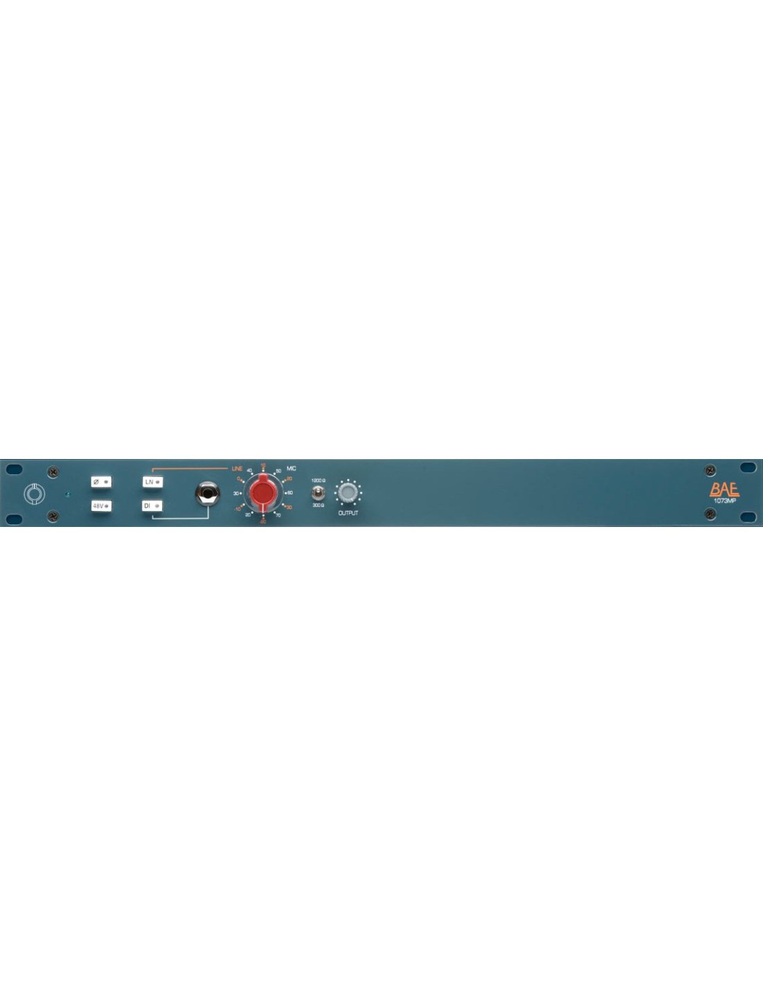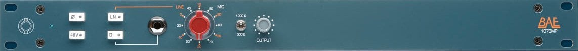 The BAE 1073MP is a microphone preamplifier. The BAE 1073MP also performs the functions of DI and DI through, is equipped with phantom power, phase reverse and is equipped with an external power supply.