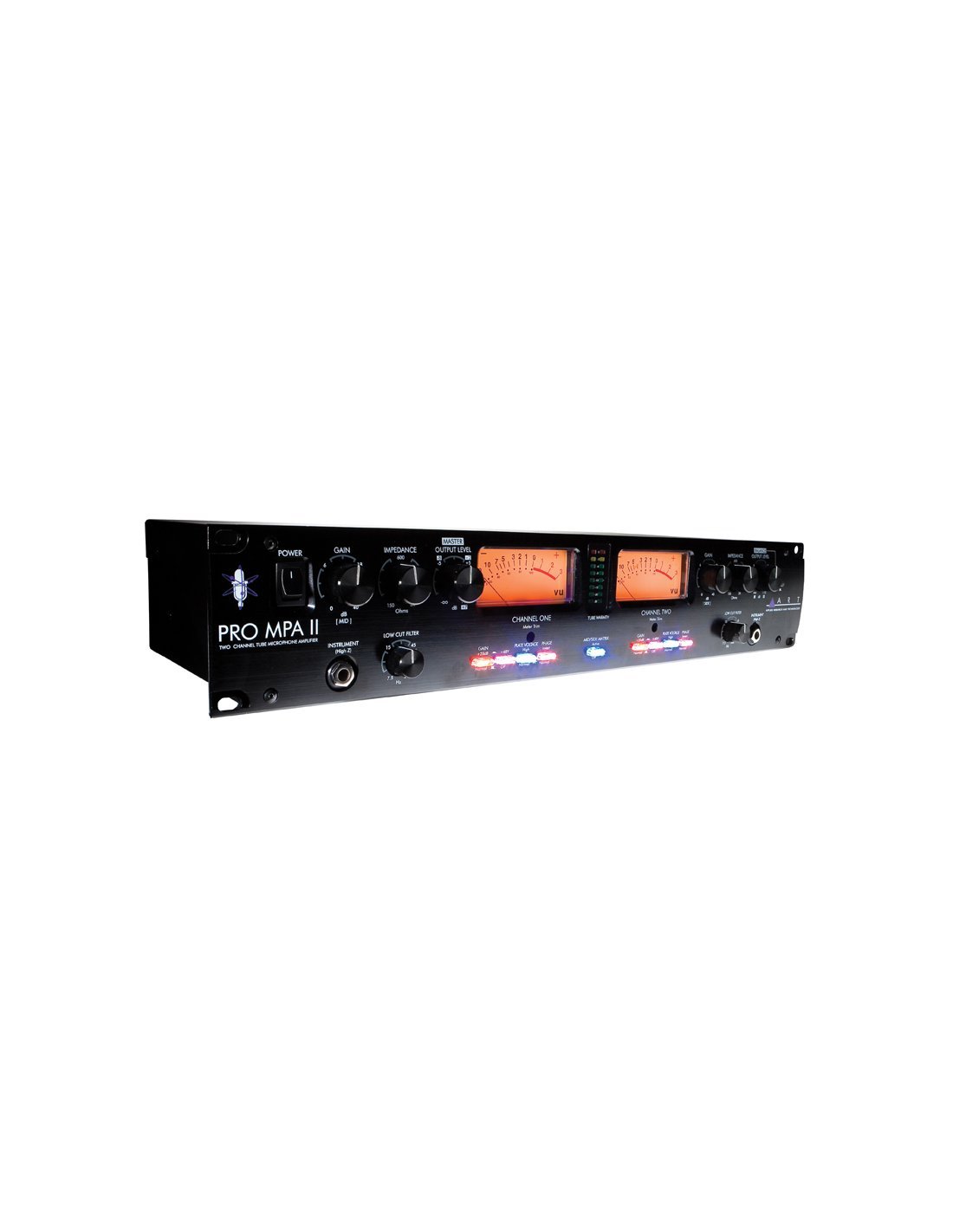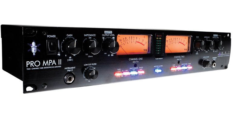 The Art Pro MPA II is an excellent quality tube microphone preamplifier; technical features include 48V Phantom power on each input circuit, variable input impedance, operation selectable between dual mono or stereo, pair of 12AX7 tubes and dimensions compatible with a rack unit.