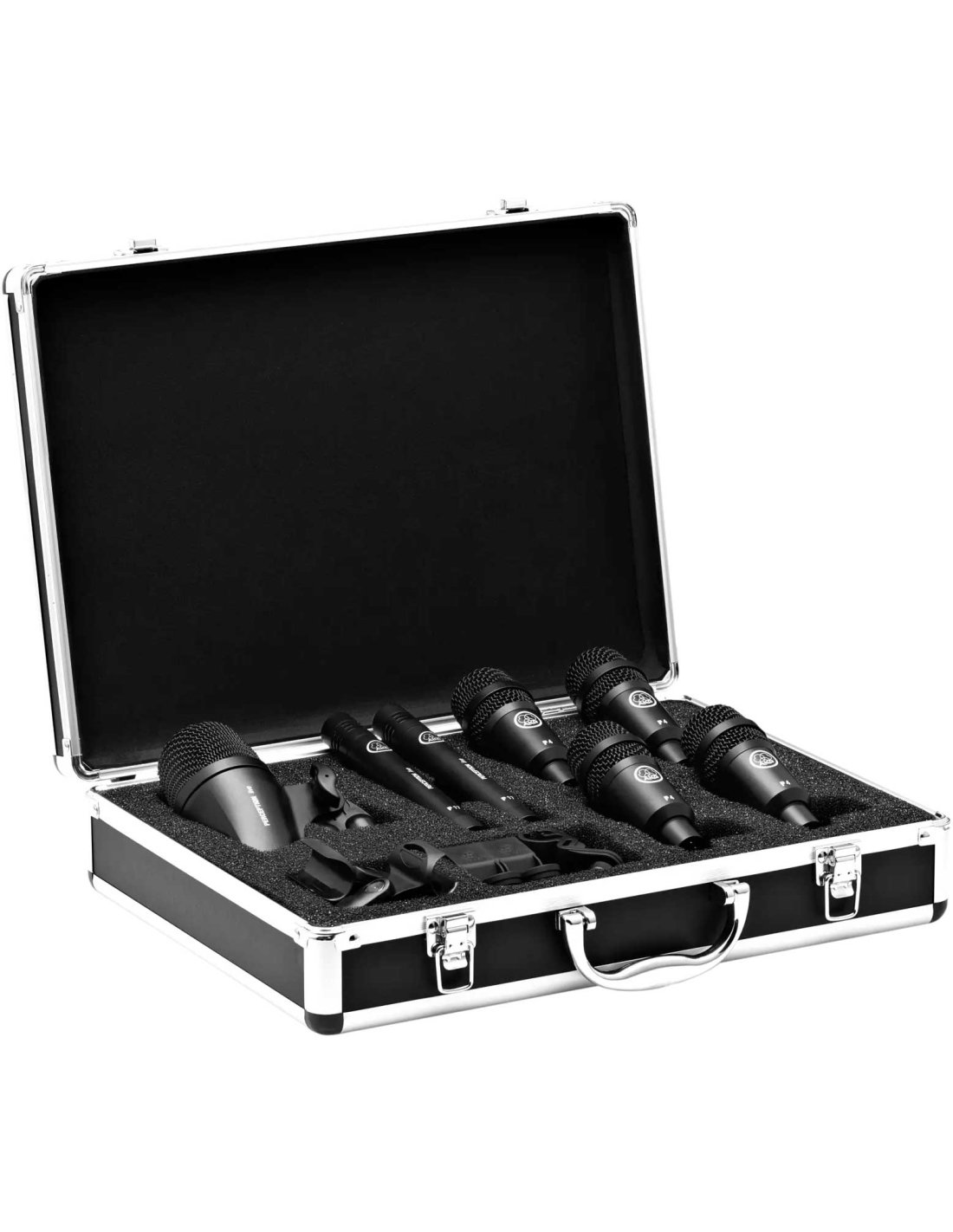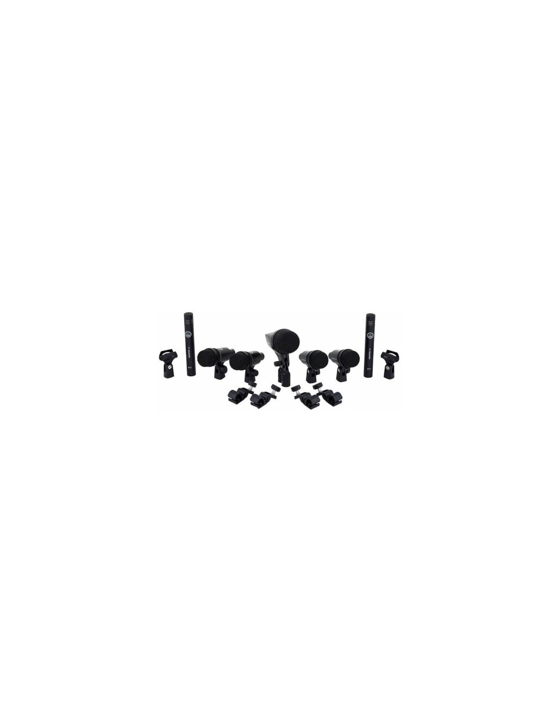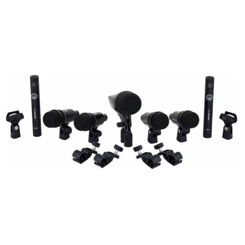 AKG DRUM SET SESSION 1 is a briefcase set with 7 microphones for microphone drum kits, for live and studio applications. The set includes the following microphones: 1 large diaphragm AKG P2 bass drum microphone with dynamic capsule, cardioid polar pattern and optimized bass frequency response, 4 AKG P4 microphones for snare and tom microphones with cardioid dynamic capsule and Humbucking coil, 2 AKG P17 cardioid condenser microphones and narrow diaphragm for overhead shooting. The set also includes rod clips and locking clamps.