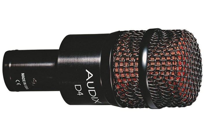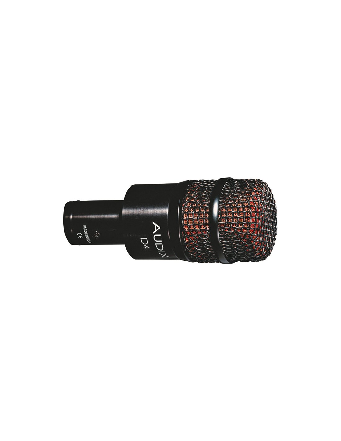 AUDIX D4 is a dynamic microphone suitable for microphoning instruments such as timpani, djembe, small drum drums, bass and brass cabinets, with a hypercardioid polar pattern with a wide frequency response from 40 Hz to 18 kHz and capable of managing sound pressure levels greater than 144 dB. Technical features include high sound isolation capacity thanks to the hypercardioid polar pattern, integrated feedback control, VLM diaphragm. Includes rod clip and carrying case