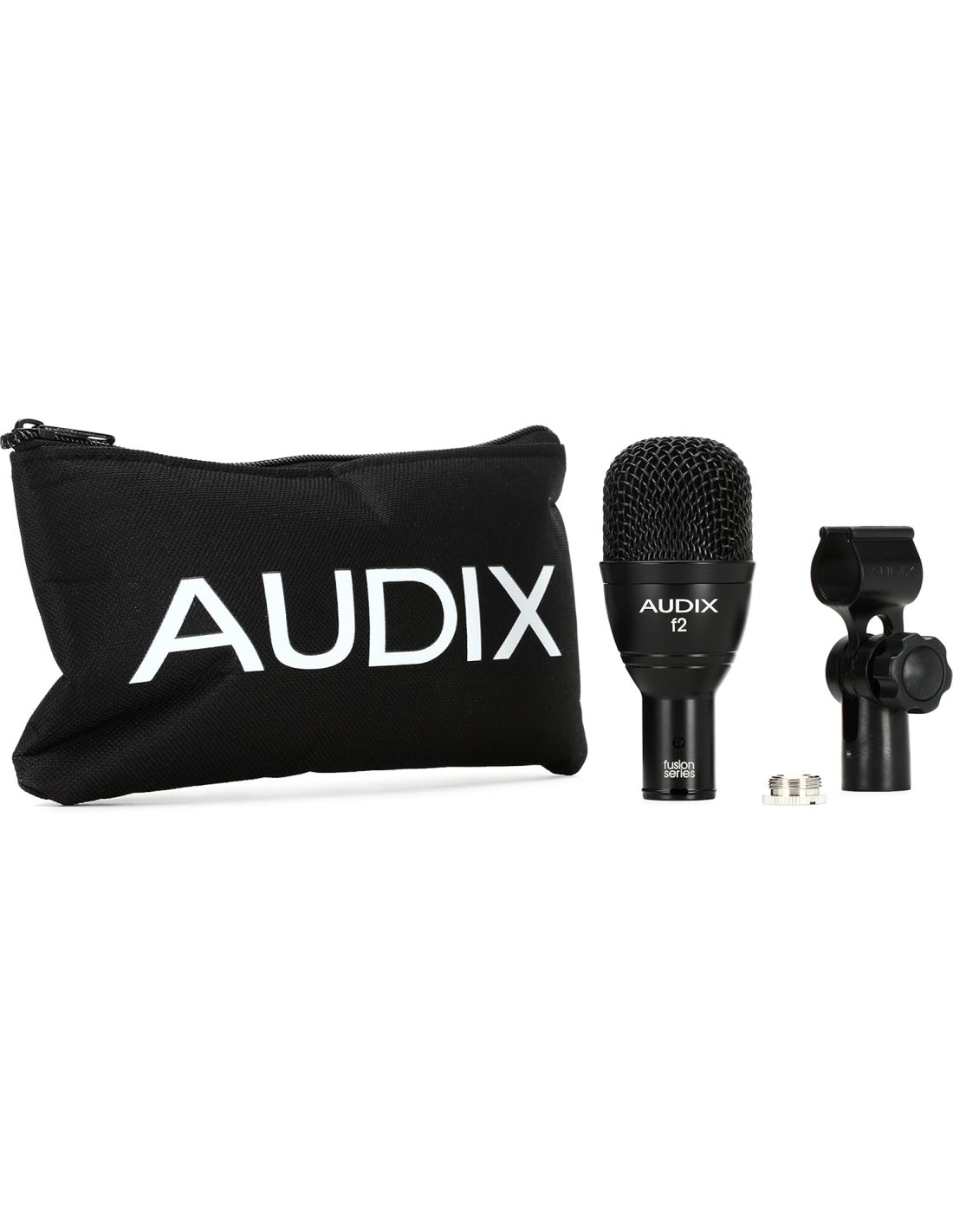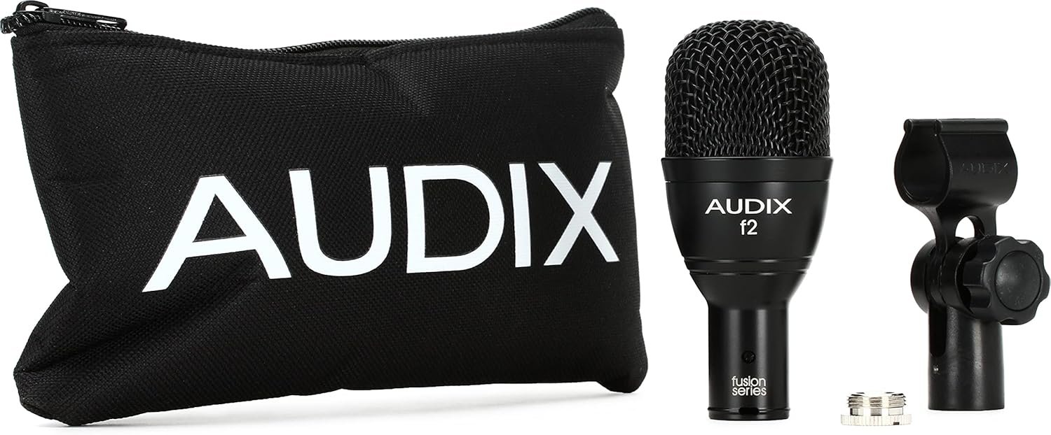 AUDIX F2 is a dynamic microphone for instruments with a hypercardioid polar pattern, particularly suitable for recording toms, timpani, congas, djembe, timbales, brass and bass amplifiers. It features hypercardioid pickups for isolation and feedback control and is equipped with an LM (Low Mass) membrane for natural and accurate sound reproduction. Includes rod clip with threaded adapter and carrying case
