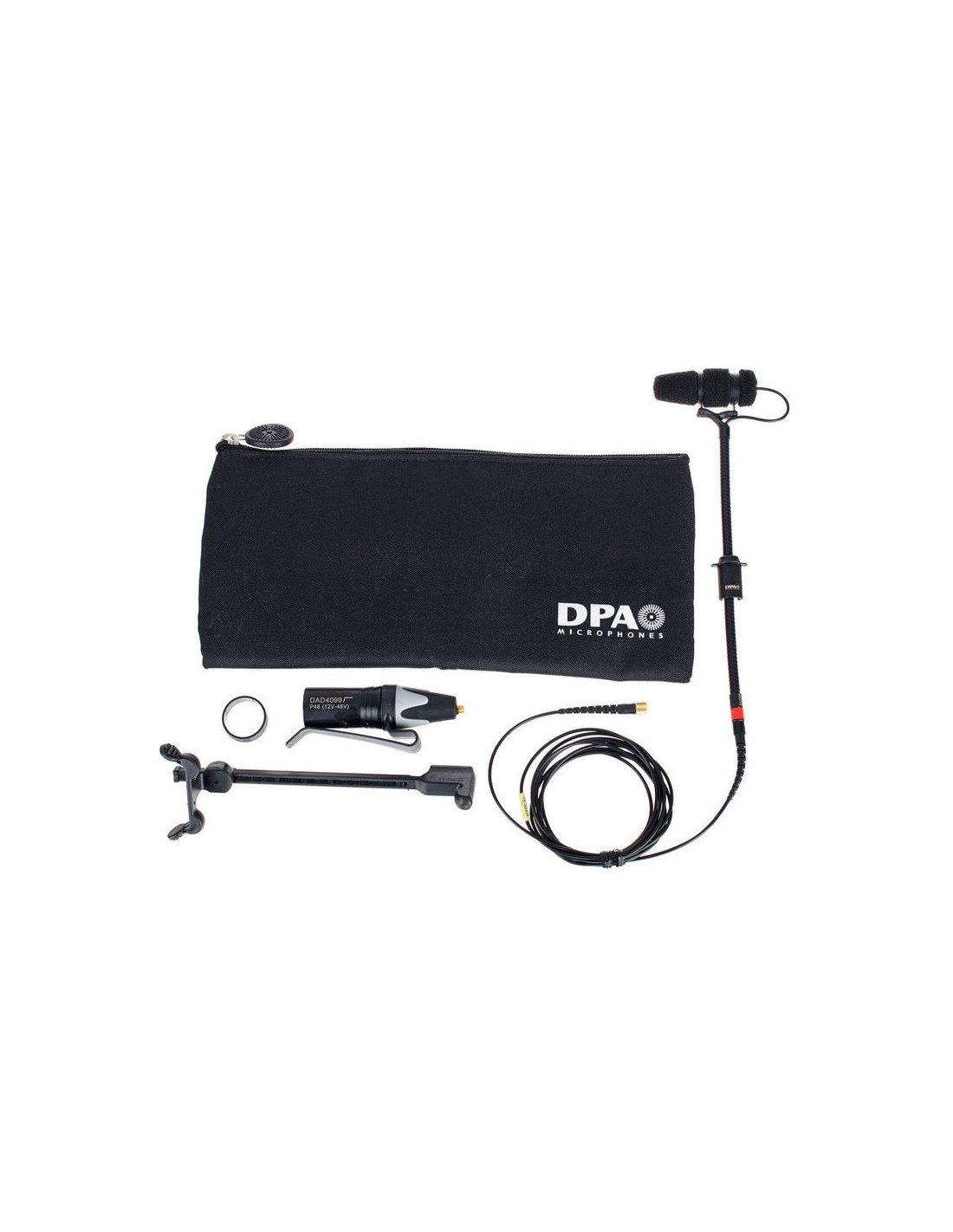 DPA 4099 CORE GUITAR is a pre-polarized condenser clip microphone and supercardioid polar pattern for classical and acoustic guitars. Technical features include, miniaturized CORE capsule with pressure gradient operating principle, 14cm flexible gooseneck for correct positioning, detachable 180cm cable, improved microphone suspension system for greater noise and vibration reduction, B+K connector. Includes support for mounting on guitars, DAD 4099 XLR phantom power adapter, case and semi-rigid carrying case.