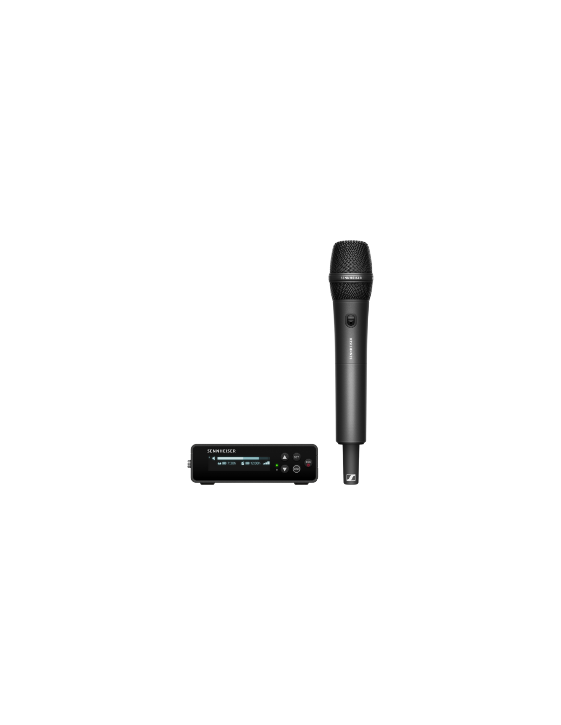 SENNHEISER EW-DP 835 SET. UHF digital wireless microphone system for video applications with EW-DP EK single-channel portable digital receiver and EW-D SKM-S handheld radio microphone. Technical features include synchronization via Bluetooth, system control via the Smart Assist app, OLED display on the receiver with command keys, magnetic system for attaching the receiver to the camera, bandwidth up to 56 MHz. The handheld transmitter has a cardioid dynamic polar pattern with an MMD 835 capsule capable of isolating sound in noisy environments. The system can be powered by a BA 70 lithium-ion battery, AA batteries or a USB-C cable