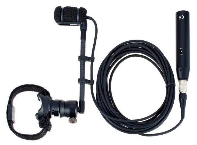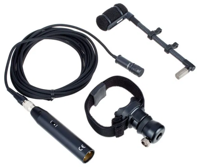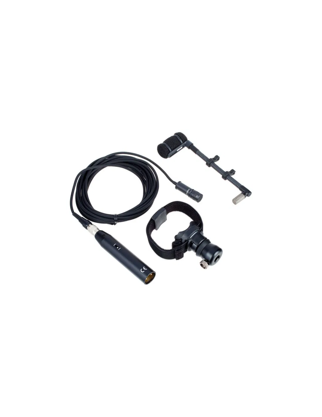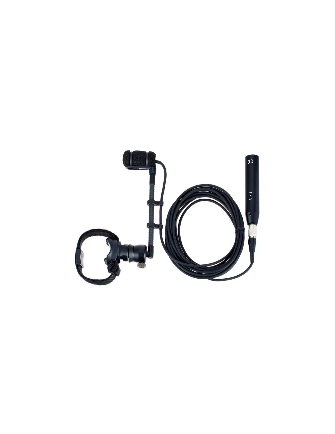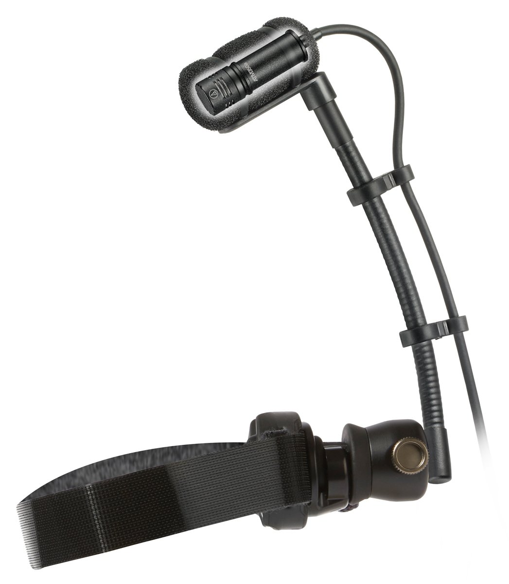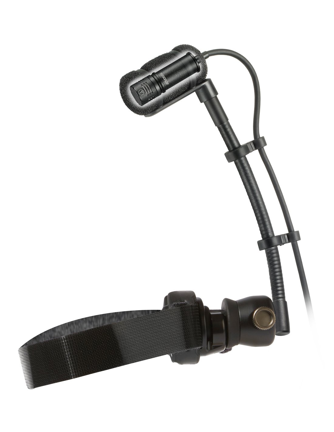 AUDIO TECHNICA ATM350W is a cardioid condenser clip microphone for clarinets and woodwinds with a flexible gooseneck and velcro fastening system. Technical features include 12 cm gooseneck, cardioid polarized condenser capsule for a balanced response even at high sound pressures, integrated 80 Hz —12dB/8VA high-pass filter, 4m cable, power module. Includes AT8490 gooseneck, AT8491W wood mounting clip, AT8543 power module, hard carrying case