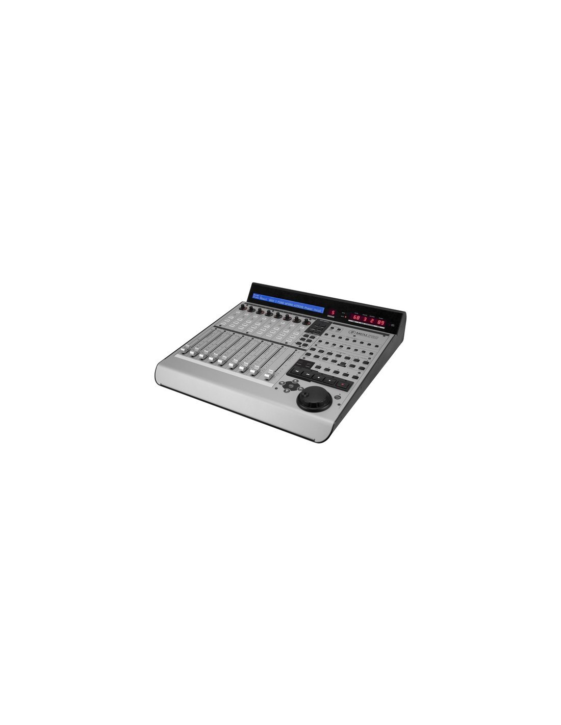 Touch-sensitive control surface with motorized faders. Mackie's proprietary communication protocol. Penny & Giles 100 mm motorized touch-sensitive optical crossfader faders. More than 50 dedicated buttons for precise parameter control. Backlit screen with track names and parameters. Up, down, right, left and zoom quick cursor buttons. Built-in USB MIDI interface for direct connection to Mac or PC with up to 3 additional MIDI devices. Expandable with Mackie Control Extender Pro and C4 pro.