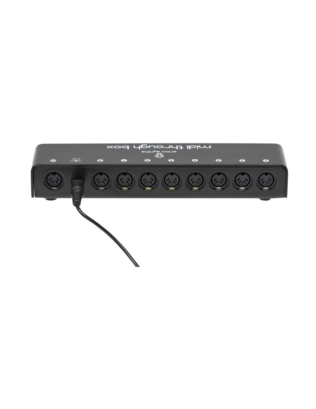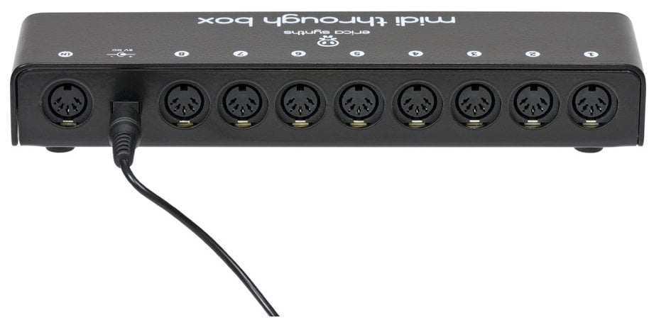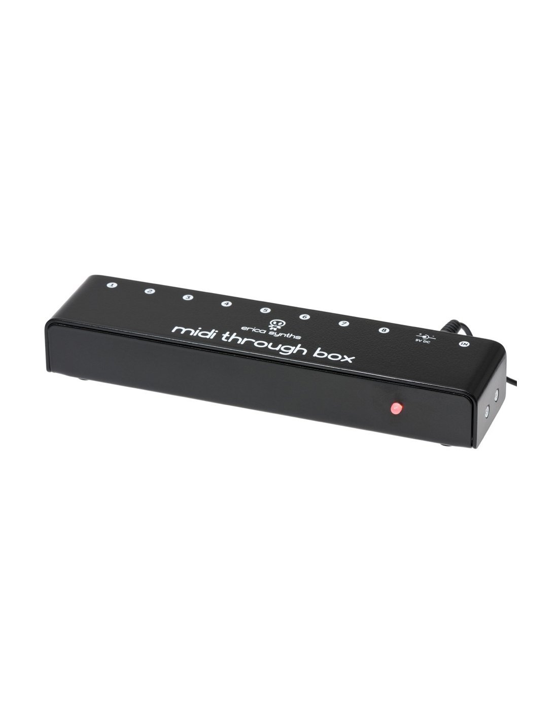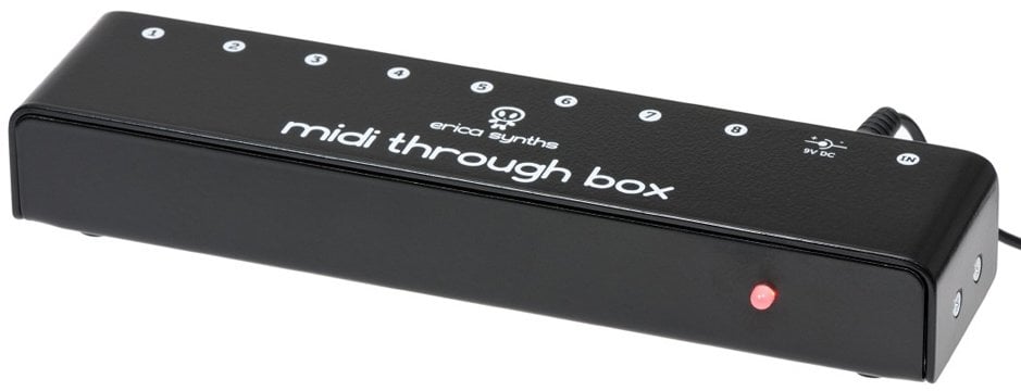 ERICA SYNTHS MIDI THRU BOX is a very low latency MIDI signal splitter that allows you to connect up to 8 instruments to sequencers or keyboards, and control them simultaneously without unwanted delays or interference.
