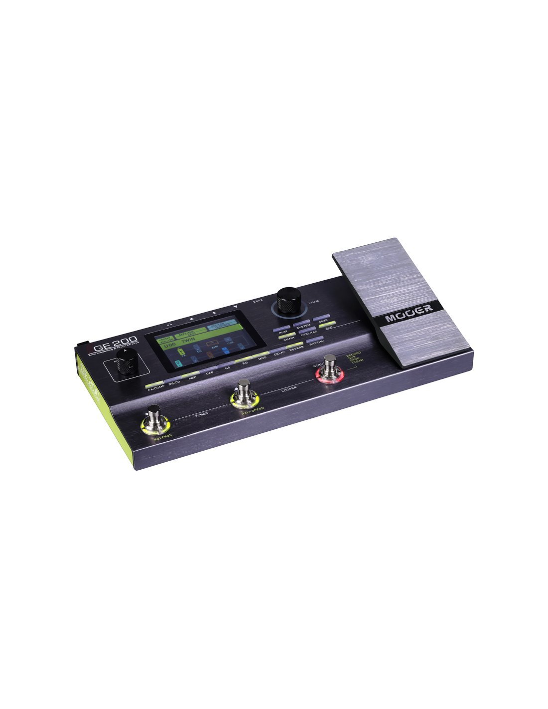 Mooer GE200 Multi-Effects Guitar Pedal. The Mooer GE200 is a multi-effect guitar pedalboard equipped with 3.5" color display, 200 presets, 55 high-quality amplifier models, 26 speaker models, the possibility of charging IR (Guitar Cabinet Impulse Responses) from third parties, 70 high-quality effects, looper up to 52 seconds (with half speed and reverse function), expression pedal (with Merge function to control multiple parameters simultaneously), electronic drum with 40 patterns, 10 metronome patterns, USB connectivity (for computer editing, direct recording and firmware update), Aux In input, headphone output.