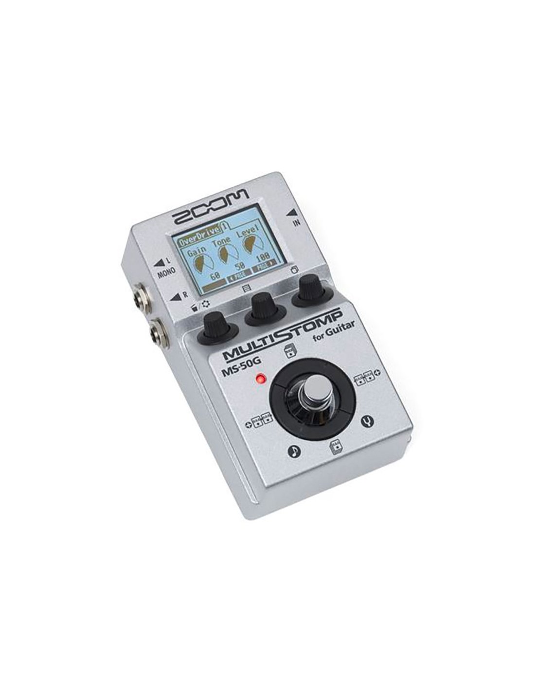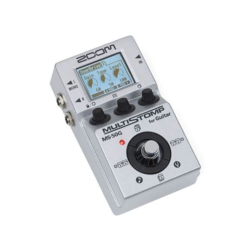 ZOOM MS-50G MULTISTOMP is a stompbox-format guitar multi-effects processor with Multi-Layer IR technology. Technical features include preamp modeling developed with IR Multi-Layer, 100 integrated guitar effects including distortions, modulations, Delays, Reverbs, Compressors, Filters and Special Effects, 100 integrated user memory patches for saving sound presets, simultaneous combination of 6 presets, LCD control screen with colors based on the effects used, 4 command cross footswitches for Memory/Scroll, implementation with App Handy Guitar Lab for iOS, integrated chromatic Tuner. It is powered by 2 AA batteries, with AC power adapter and USB.