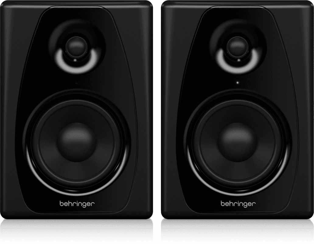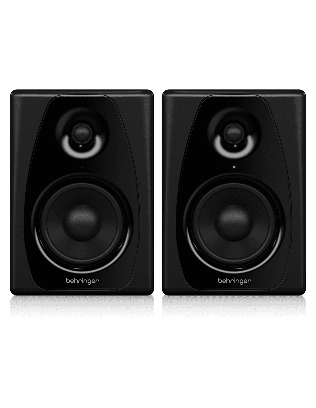 BEHRINGER STUDIO 50USB. Pair of 2-way biamplified USB digital monitors with 150W of power. Technical features include 5" long-excursion woofer and 1" high-resolution silk dome tweeter, USB input to digital stereo audio sources, tweeter sensitivity control, High Freq pad via 4-way switch, 2 TRS L/R inputs, 2 XLR L/R inputs, link