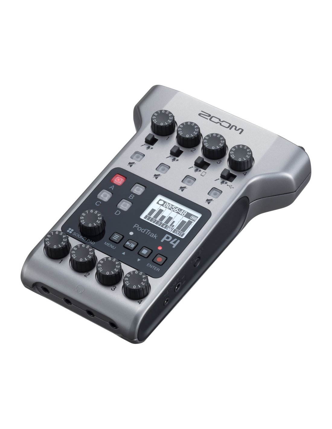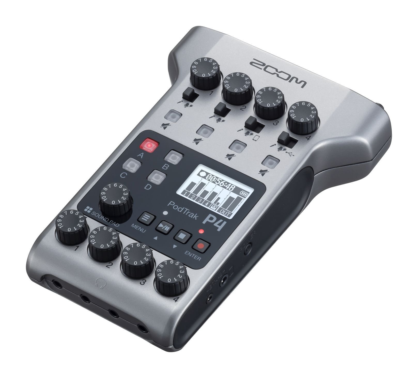 4x XLR microphone inputs with phantom power, gain and mute control — 4x headphone outputs with individual volume control — 3.5mm TRRS jack connector for smartphones — Mix-Minus function for feedback elimination — 4x programmable Sound Pads with 11 presets — Recording separate tracks directly on SD, SDHC and SDXC cards up to 512GB — Sampling rate: 16-bit /44.1kHz audio WAV — 1x USB-C connector, Class Compliant Mode for iOS compatibility (Lightning to USB camera adapter required) — USB 2-input 2-output interface — USB powered or 44.1 kHz audio Zoom AD-17 transformer — Weight without batteries: 290g — Dimensions (mm): 112 (L) x 155 (D) x 47 (H)