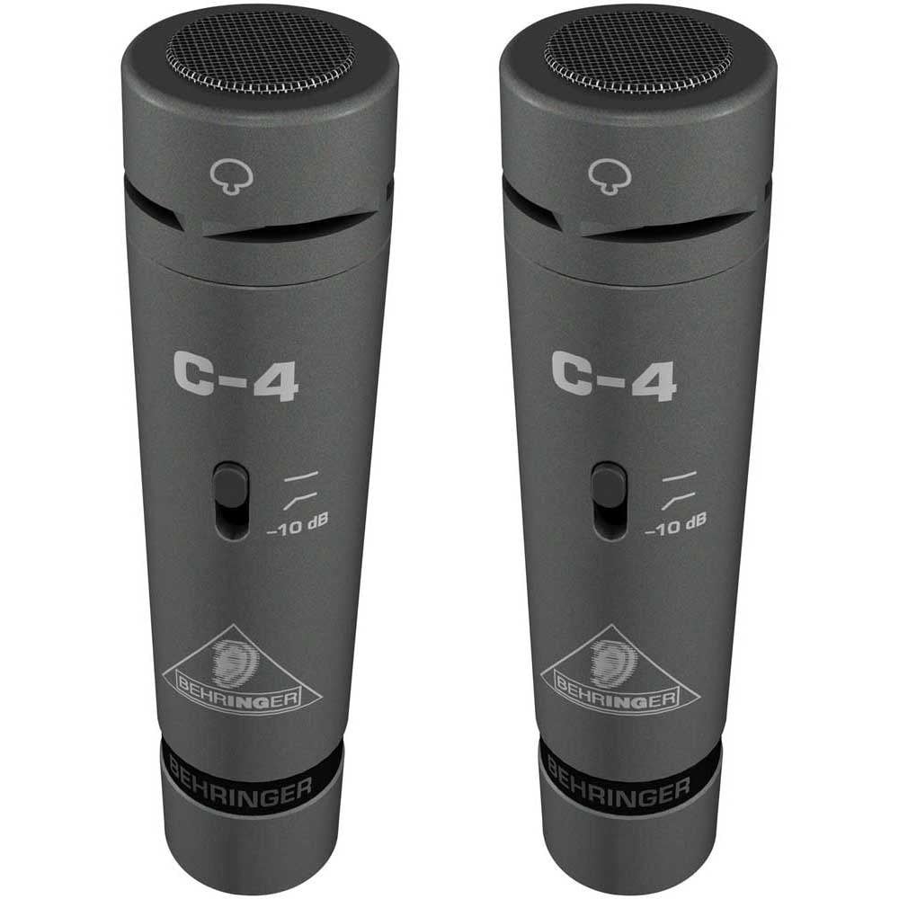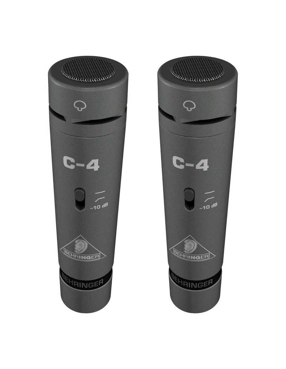 The Behringer C4 are a pair of Behringer studio microphones. The C4 are small diaphragm condenser microphones, ideal for both studio and live situations. These Behringer studio microphones offer a wide frequency response and, thanks to the FET input and high-pass filter, eliminate distortions at low frequencies. The pair comes with a carrying case, windscreen, stereo bar and clip holders